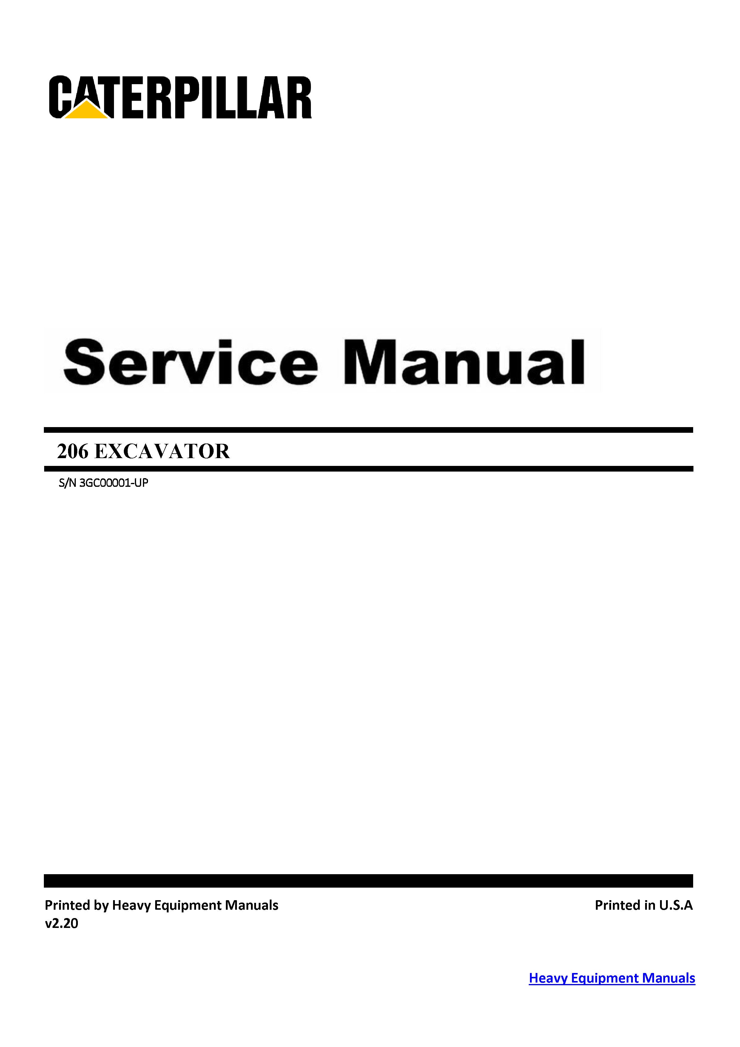 CATERPILLAR 206 EXCAVATOR 3GC SERVICE REPAIR MANUAL