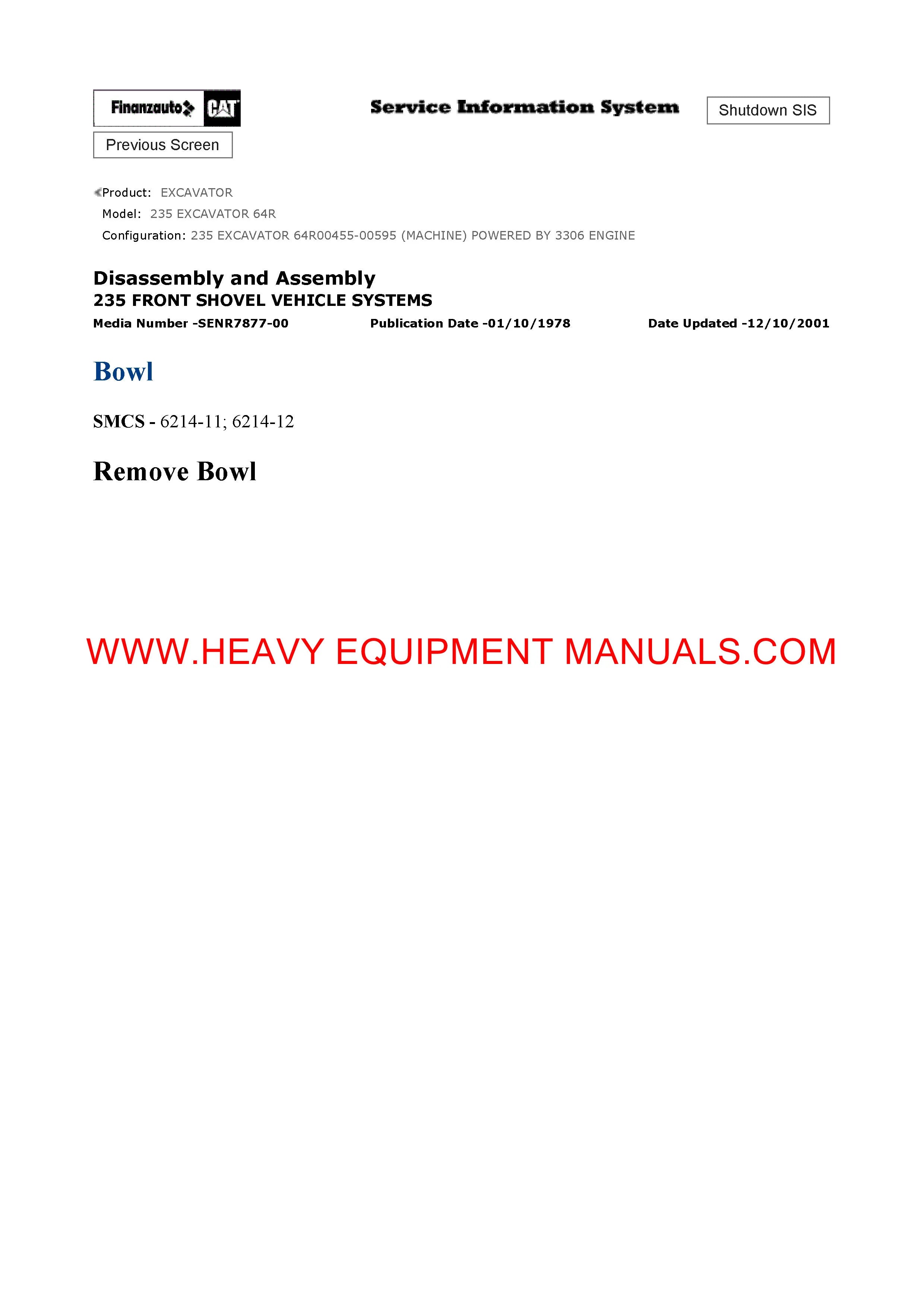 It is Complete Original Factory for Caterpillar 235 EXCAVATOR. Covers all the service and repair information about Caterpillar 235 EXCAVATOR. The information in this manual covers everything you need to know when you want to service and repair Caterpillar 235 EXCAVATOR.