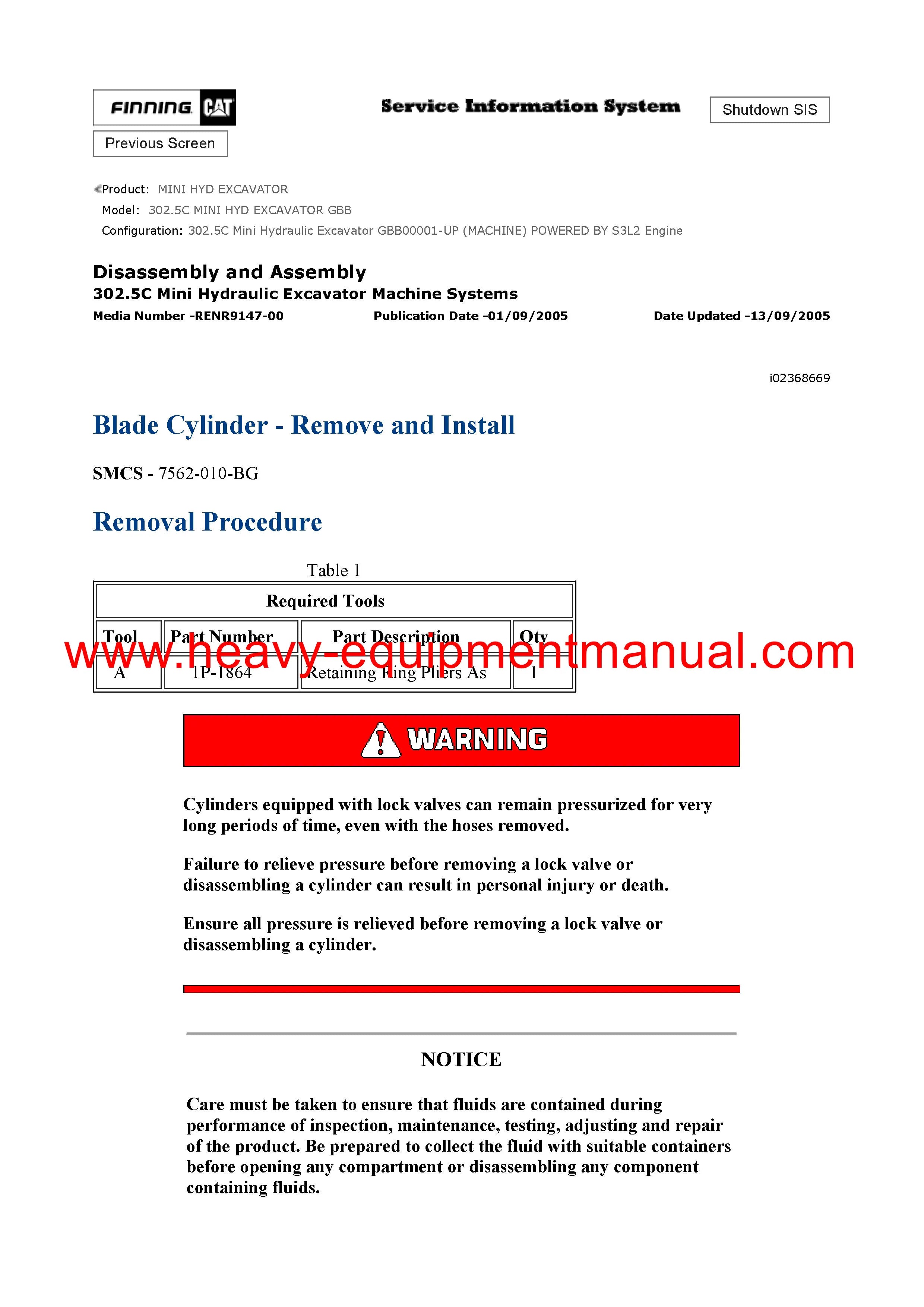Caterpillar 302.5C MINI HYD EXCAVATOR General Service Information