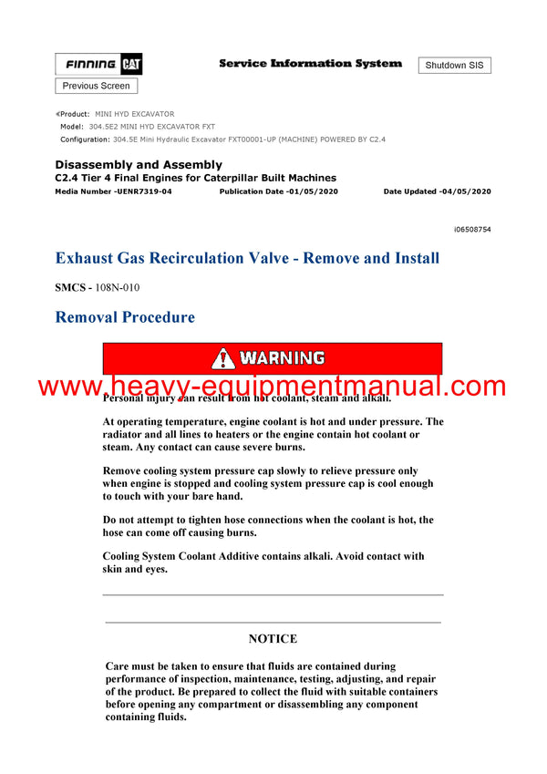 Caterpillar 304.5E2 MINI HYD EXCAVATOR General Service Information