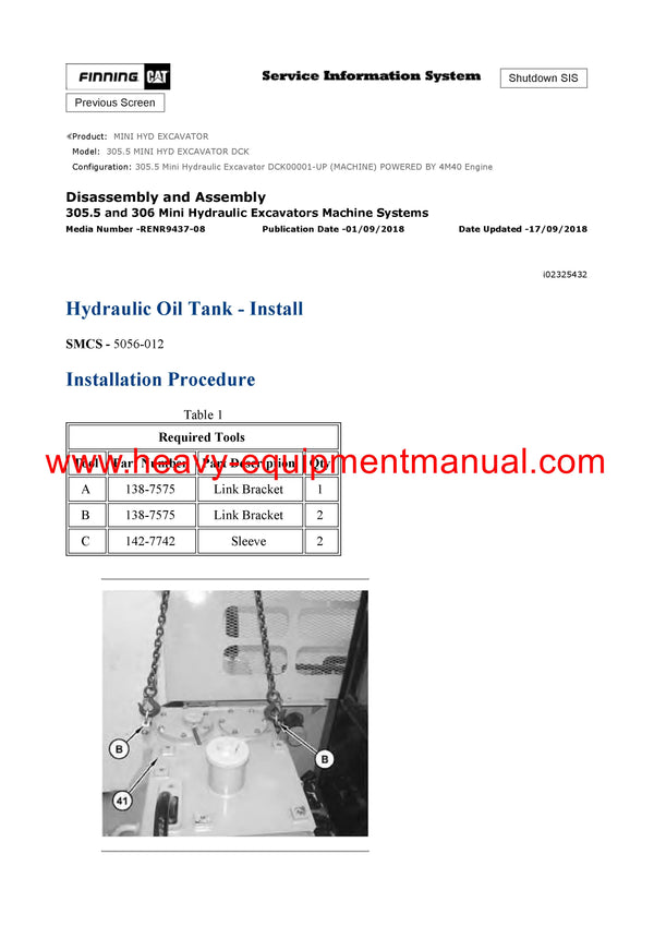 Caterpillar 305.5 MINI HYD EXCAVATOR General Service Information