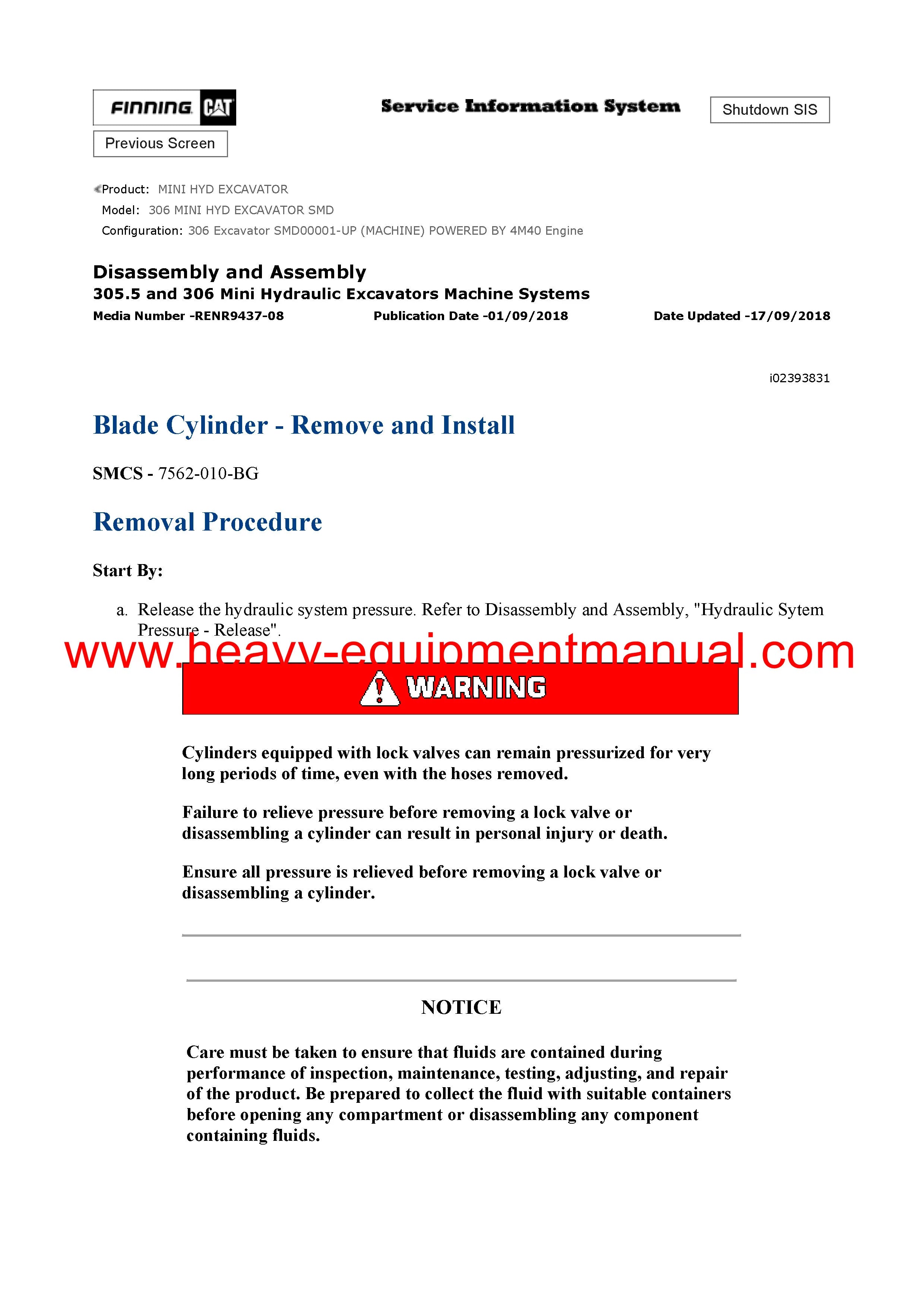 It is Complete Original Factory for Caterpillar 306 MINI HYD EXCAVATOR. Covers all the service and repair information about Caterpillar 306 MINI HYD EXCAVATOR. The information in this manual covers everything you need to know when you want to service and repair Caterpillar 306 MINI HYD EXCAVATOR.