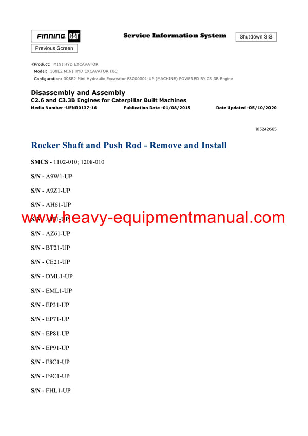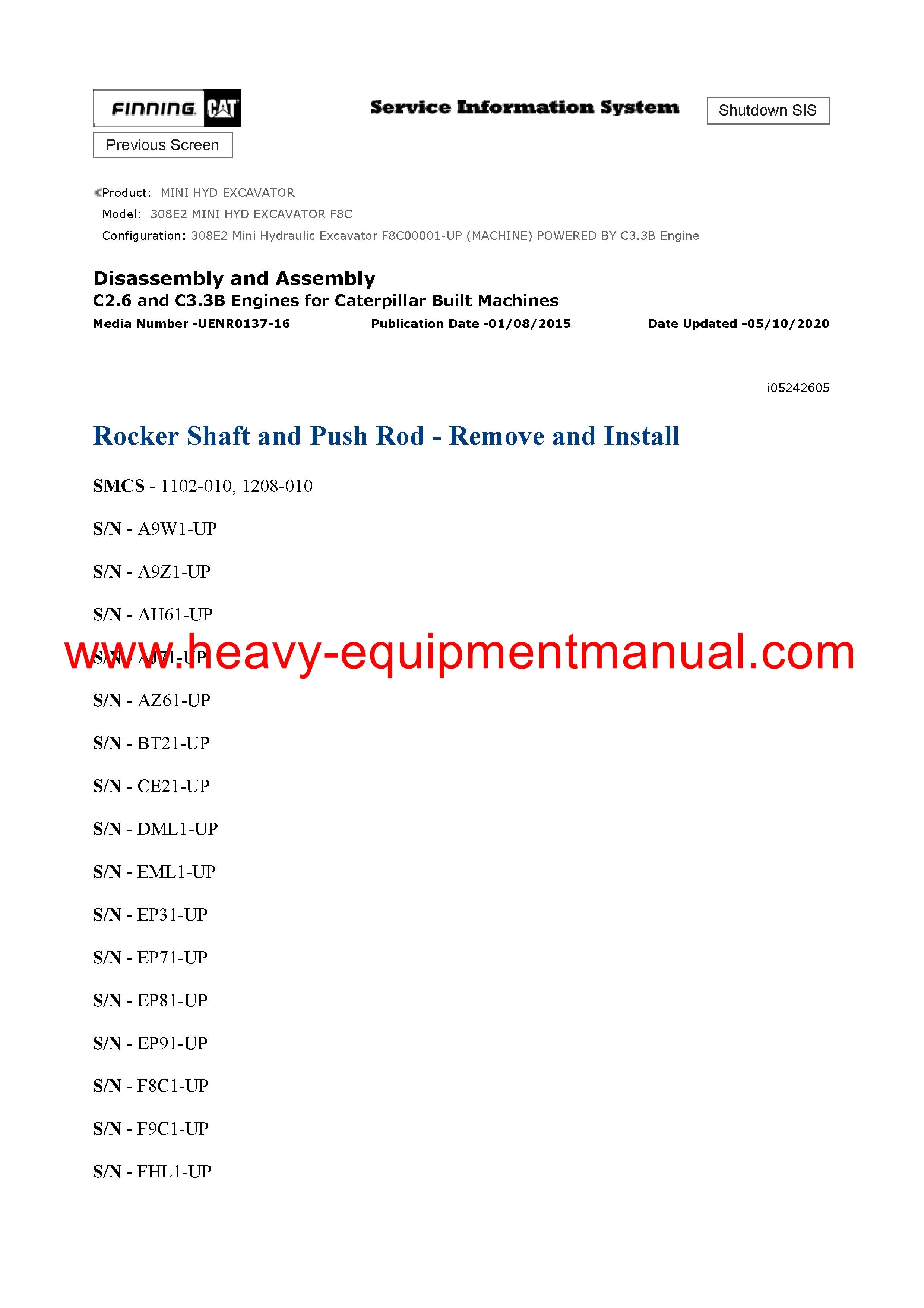 It is Complete Original Factory for Caterpillar 308E2 MINI HYD EXCAVATOR. Covers all the service and repair information about Caterpillar 308E2 MINI HYD EXCAVATOR. The information in this manual covers everything you need to know when you want to service and repair Caterpillar 308E2 MINI HYD EXCAVATOR.