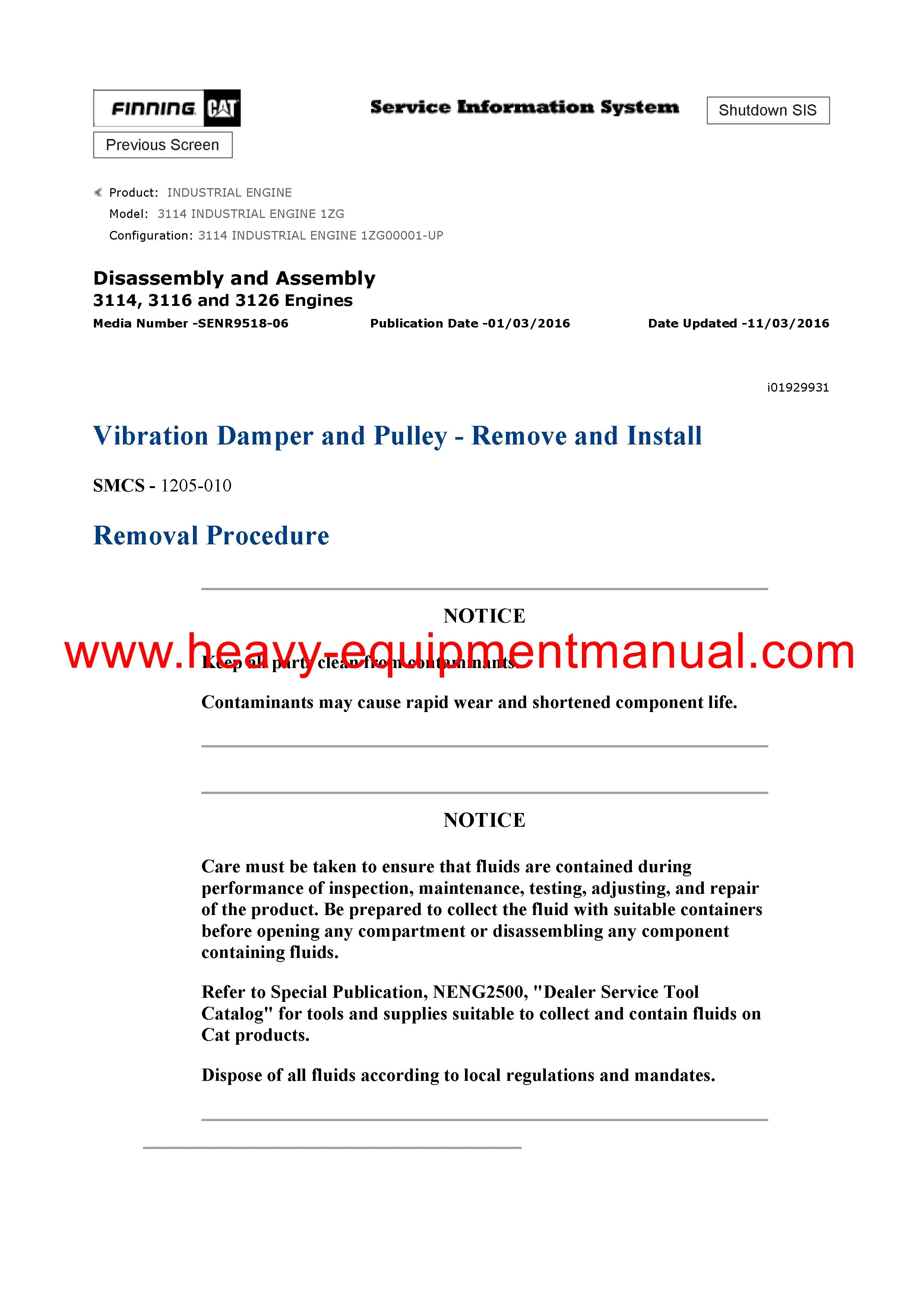 It is Complete Original Factory for Caterpillar 3114 INDUSTRIAL ENGINE. Covers all the service and repair information about Caterpillar 3114 INDUSTRIAL ENGINE. The information in this manual covers everything you need to know when you want to service and repair Caterpillar 3114 INDUSTRIAL ENGINE.