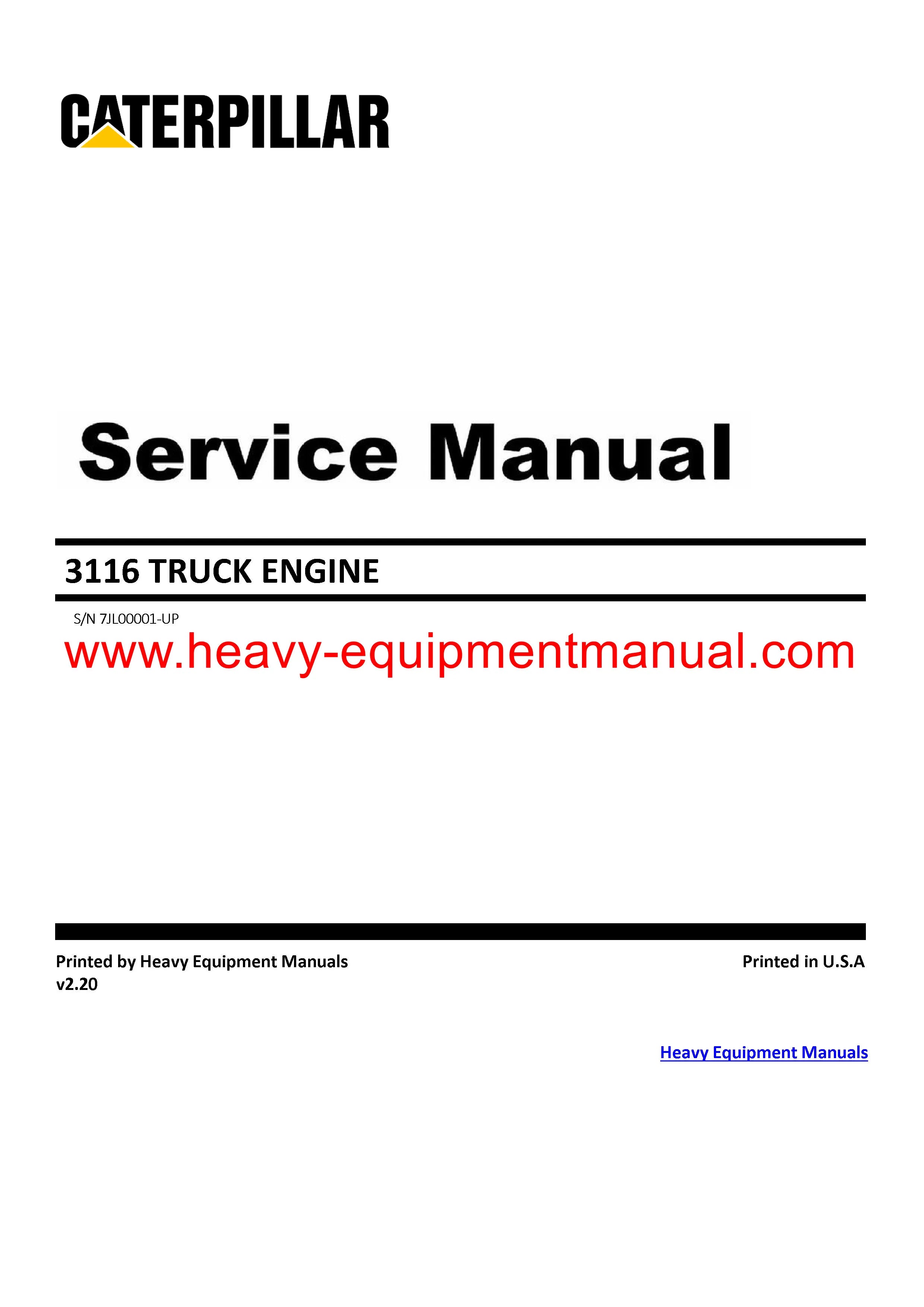 It is Complete Original Factory for Caterpillar 3116 TRUCK ENGINE. Covers all the service and repair information about Caterpillar 3116 TRUCK ENGINE. The information in this manual covers everything you need to know when you want to service and repair Caterpillar 3116 TRUCK ENGINE.