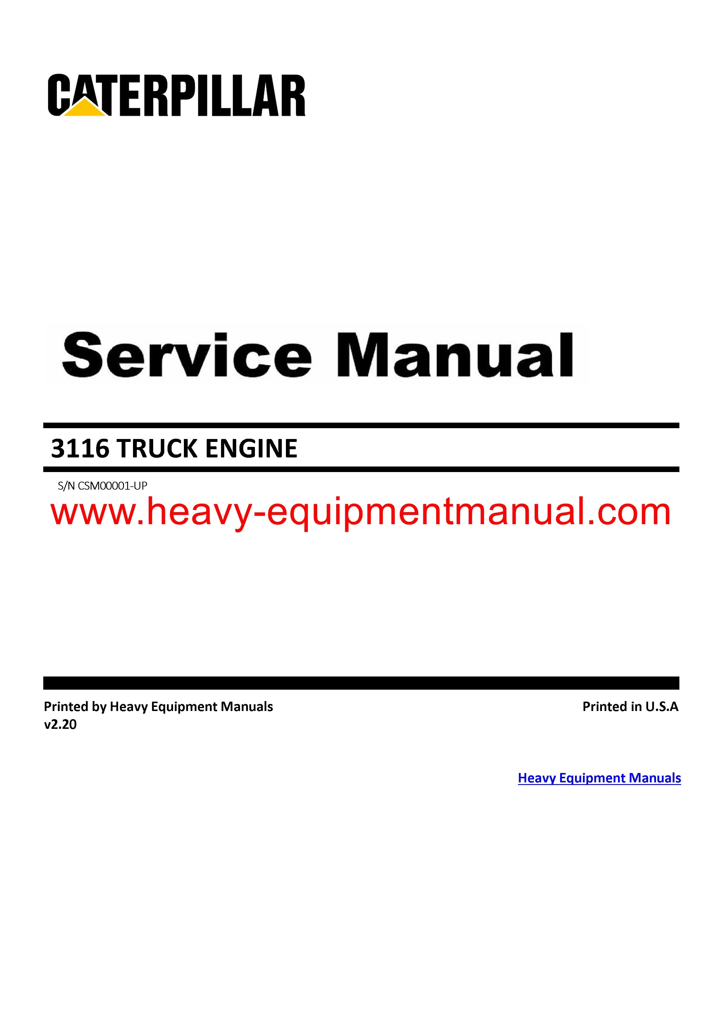 It is Complete Original Factory for Caterpillar 3116 TRUCK ENGINE. Covers all the service and repair information about Caterpillar 3116 TRUCK ENGINE. The information in this manual covers everything you need to know when you want to service and repair Caterpillar 3116 TRUCK ENGINE.