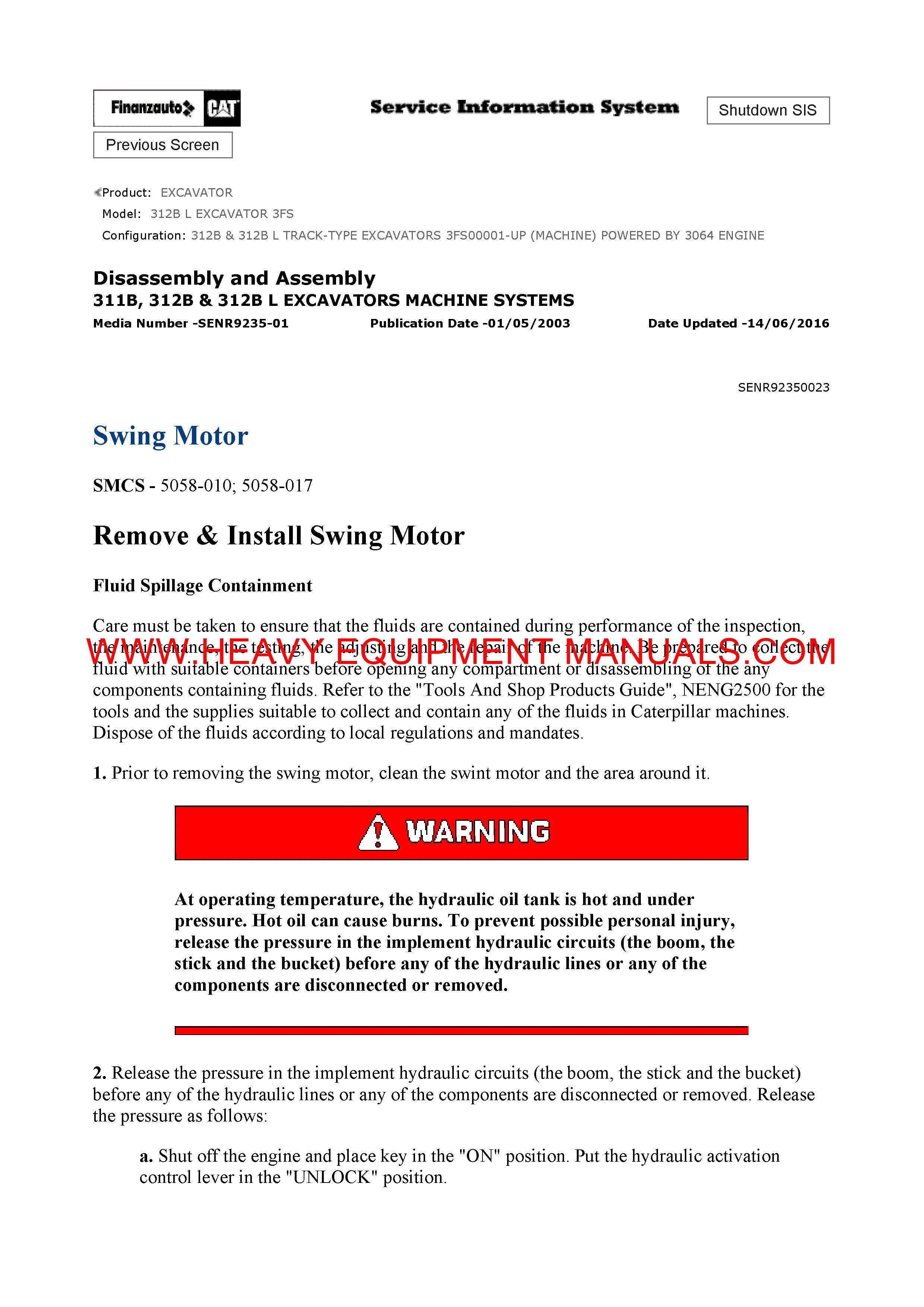 DOWNLOAD CATERPILLAR 312B L EXCAVATOR SERVICE REPAIR MANUAL SN: 3FS