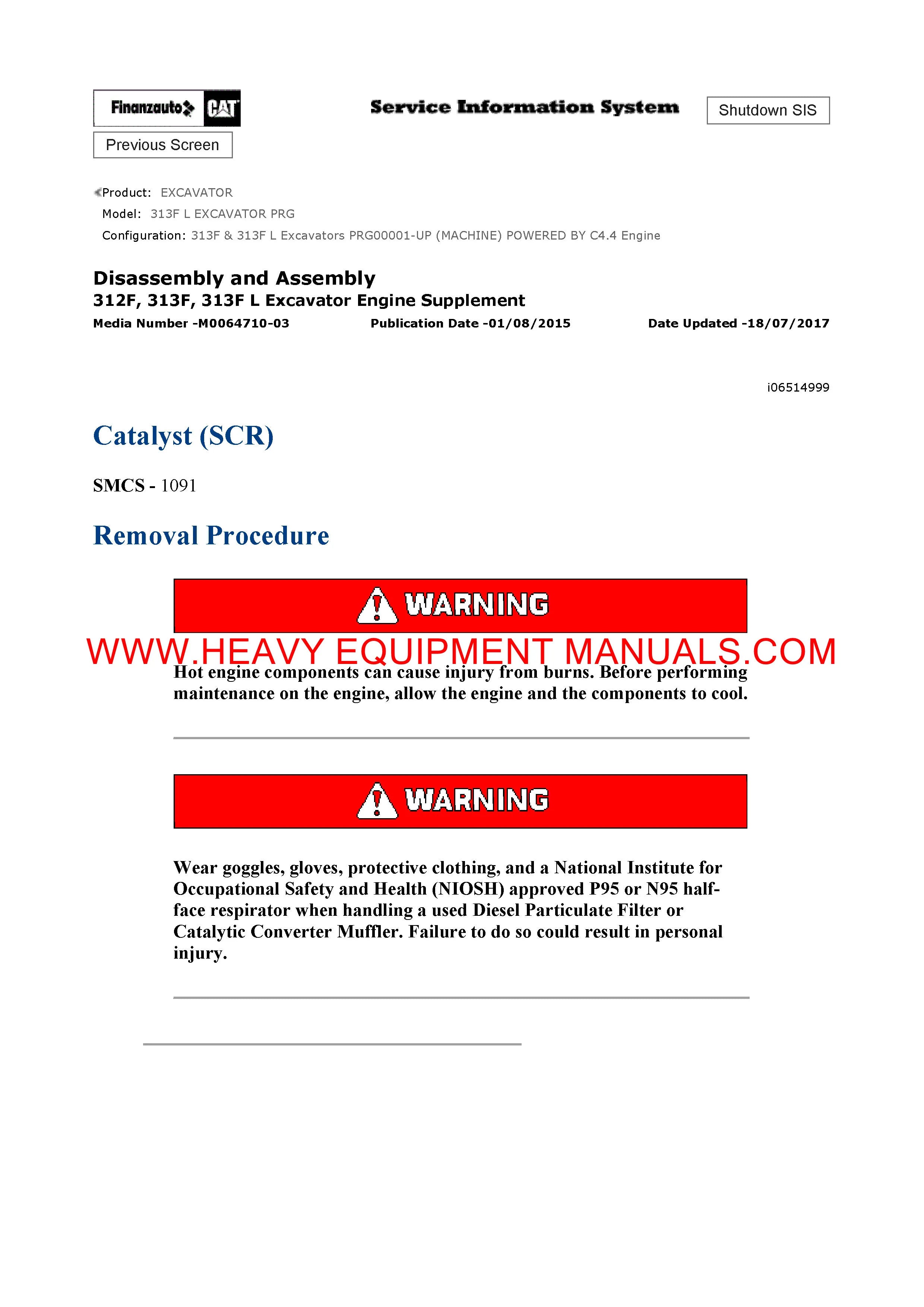 It is Complete Original Factory for Caterpillar 313F L EXCAVATOR. Covers all the service and repair information about Caterpillar 313F L EXCAVATOR. The information in this manual covers everything you need to know when you want to service and repair Caterpillar 313F L EXCAVATOR.
