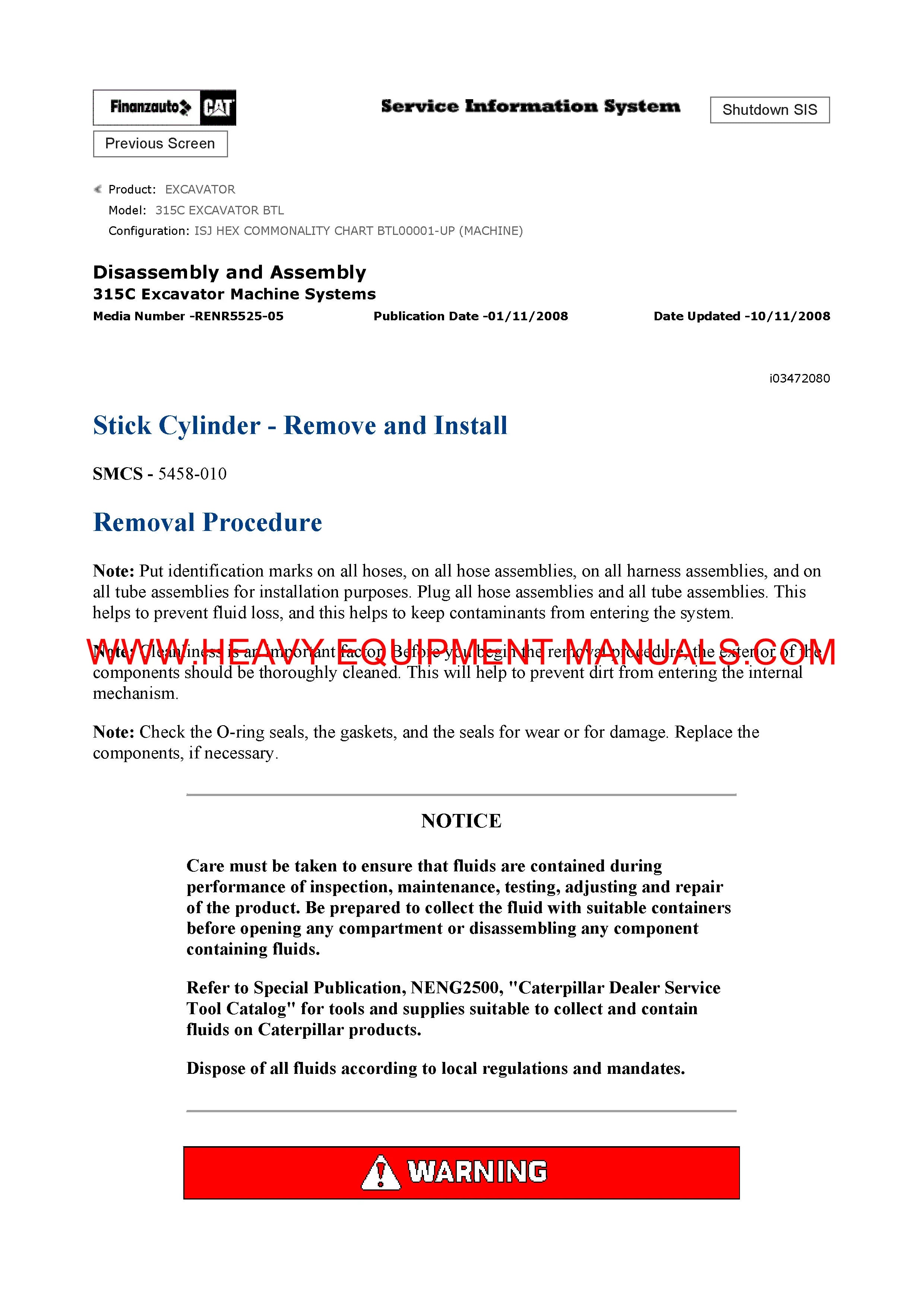 Caterpillar 315C EXCAVATOR General Service Information