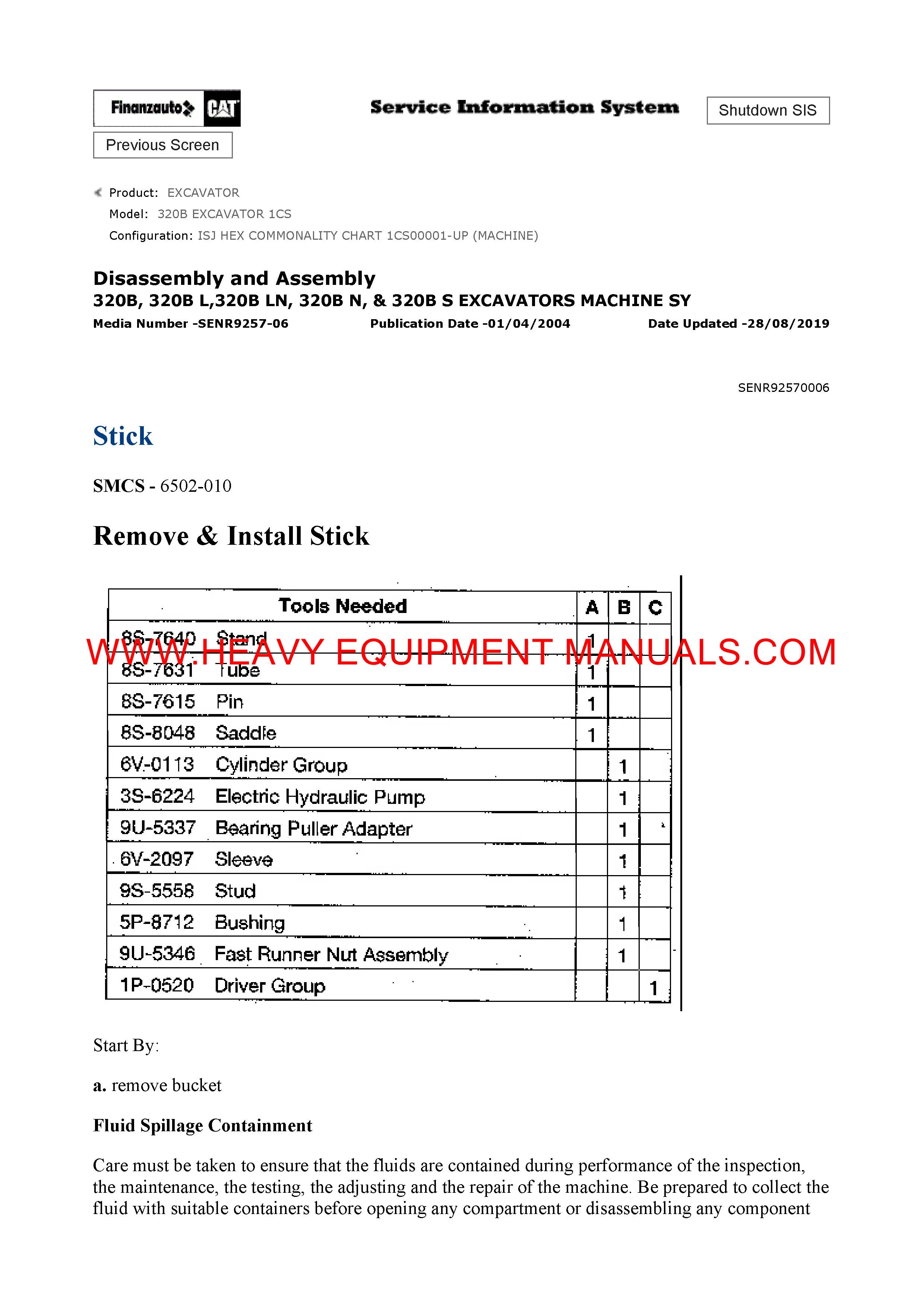 Caterpillar 320B EXCAVATOR General Service Information