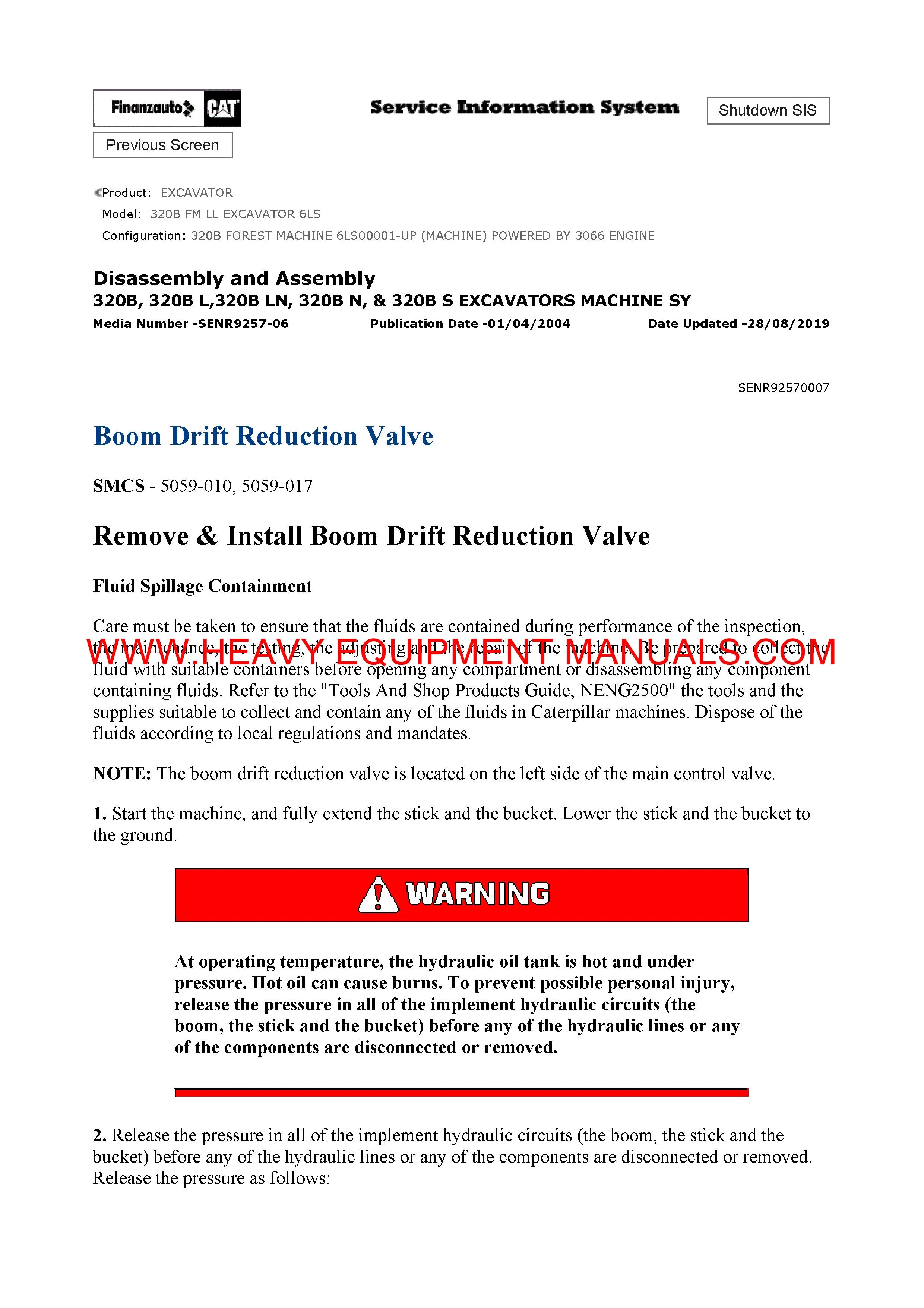 It is Complete Original Factory for Caterpillar 320B FM LL EXCAVATOR. Covers all the service and repair information about Caterpillar 320B FM LL EXCAVATOR. The information in this manual covers everything you need to know when you want to service and repair Caterpillar 320B FM LL EXCAVATOR.
