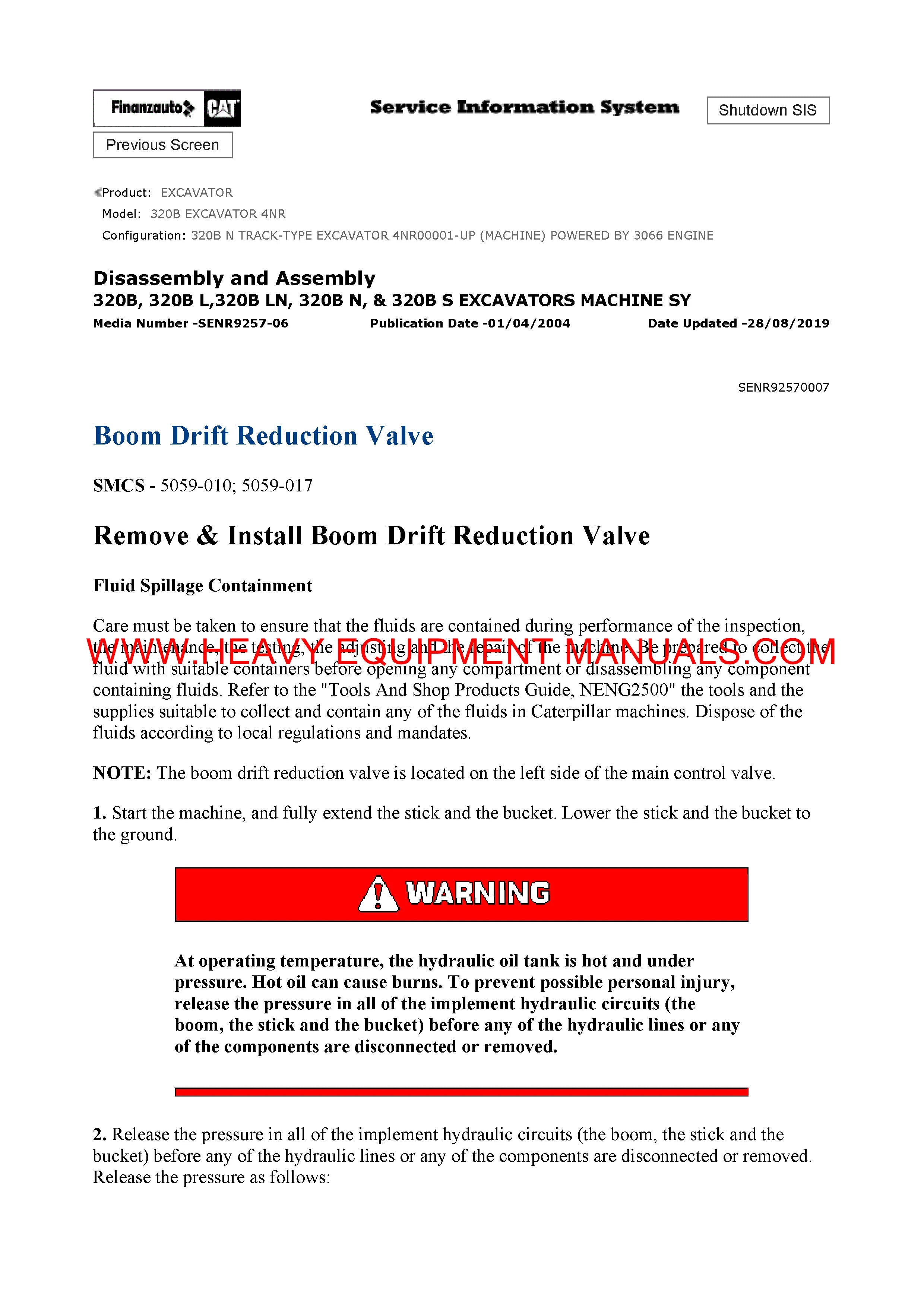 It is Complete Original Factory for Caterpillar 320B N EXCAVATOR. Covers all the service and repair information about Caterpillar 320B N EXCAVATOR. The information in this manual covers everything you need to know when you want to service and repair Caterpillar 320B N EXCAVATOR.