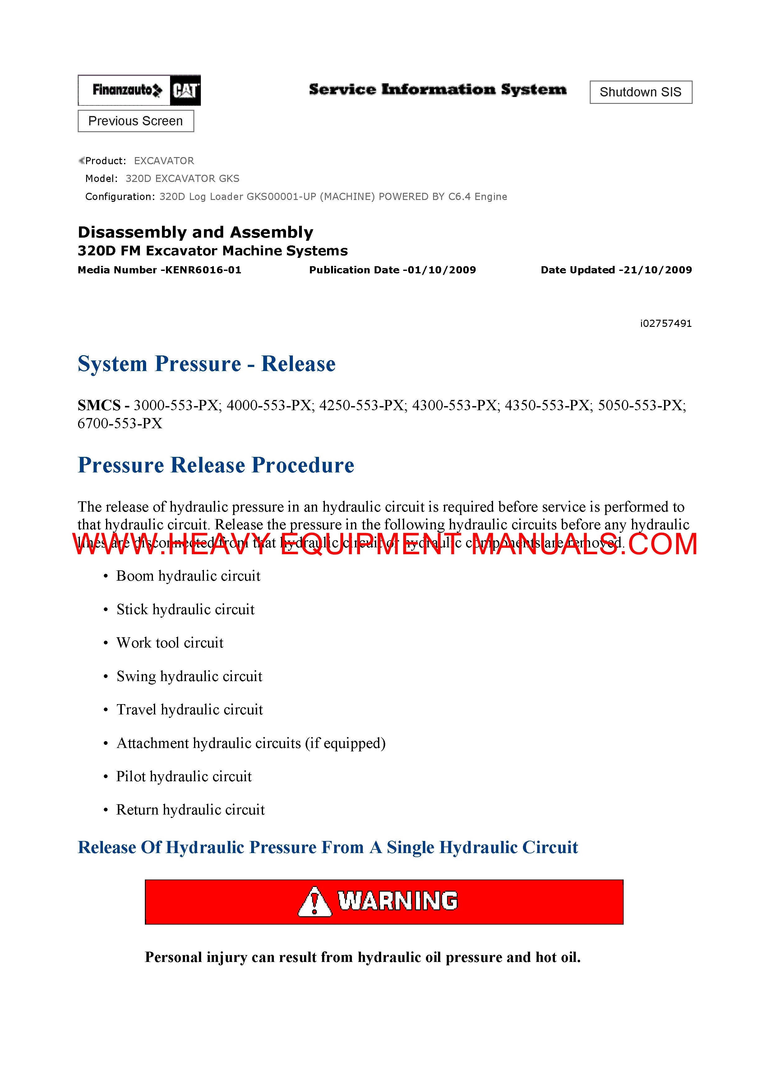 It is Complete Original Factory for Caterpillar 320D EXCAVATOR. Covers all the service and repair information about Caterpillar 320D EXCAVATOR. The information in this manual covers everything you need to know when you want to service and repair Caterpillar 320D EXCAVATOR.