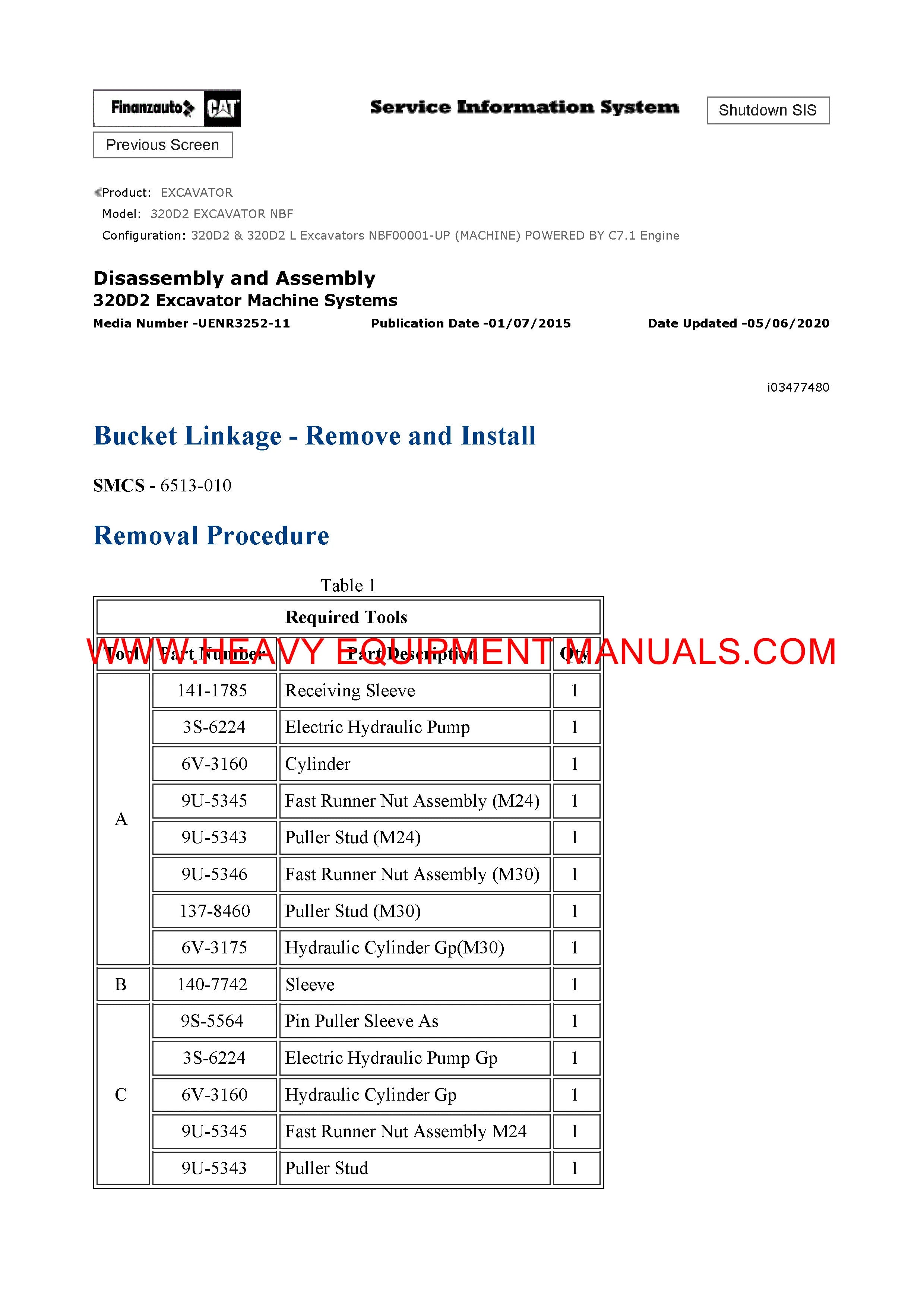 Caterpillar 320D2 EXCAVATOR General Service Information