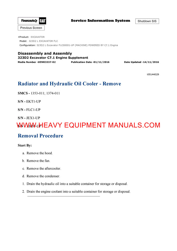 Caterpillar 323D2 L EXCAVATOR General Service Information