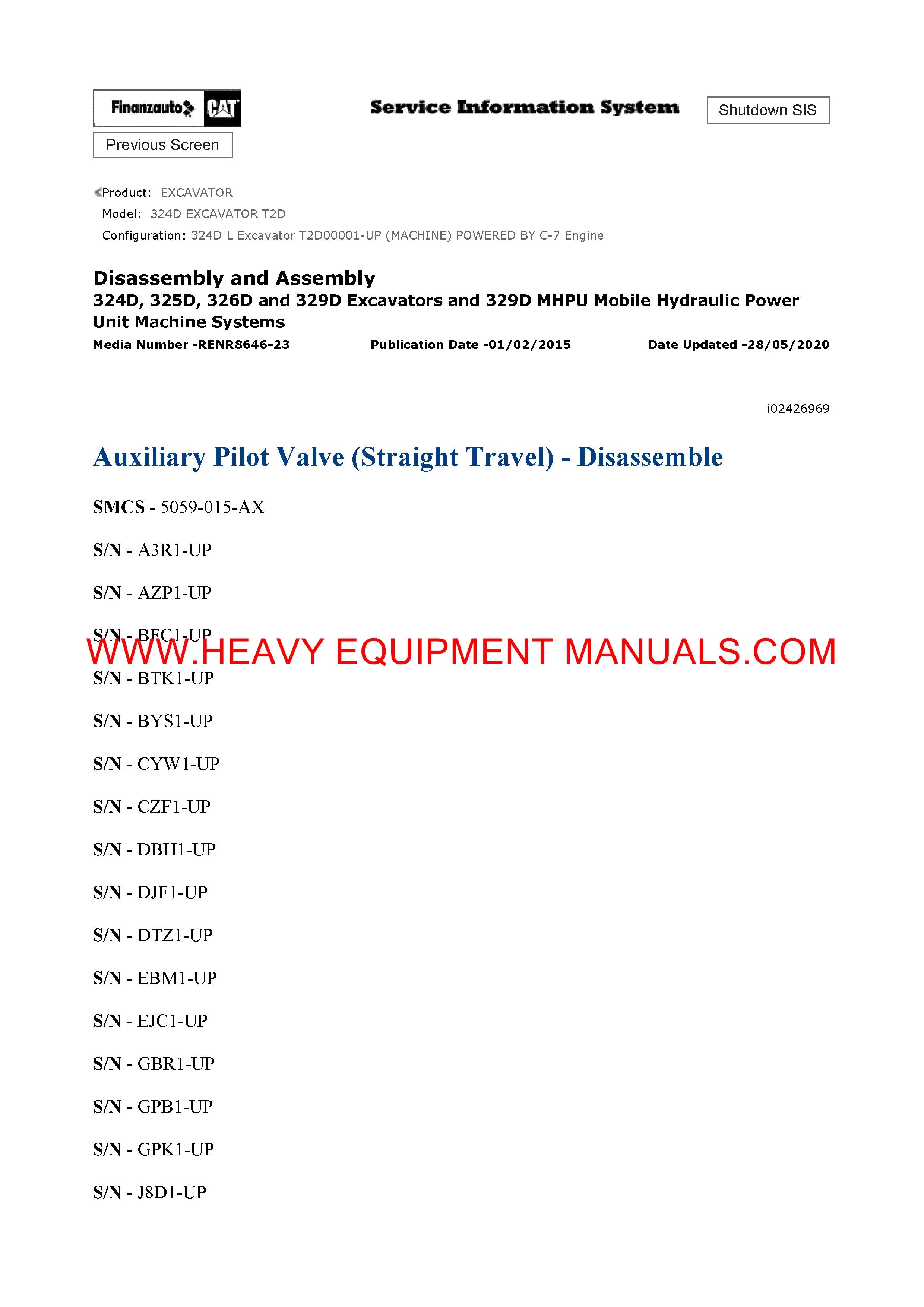 It is Complete Original Factory for Caterpillar 324D EXCAVATOR. Covers all the service and repair information about Caterpillar 324D EXCAVATOR. The information in this manual covers everything you need to know when you want to service and repair Caterpillar 324D EXCAVATOR.