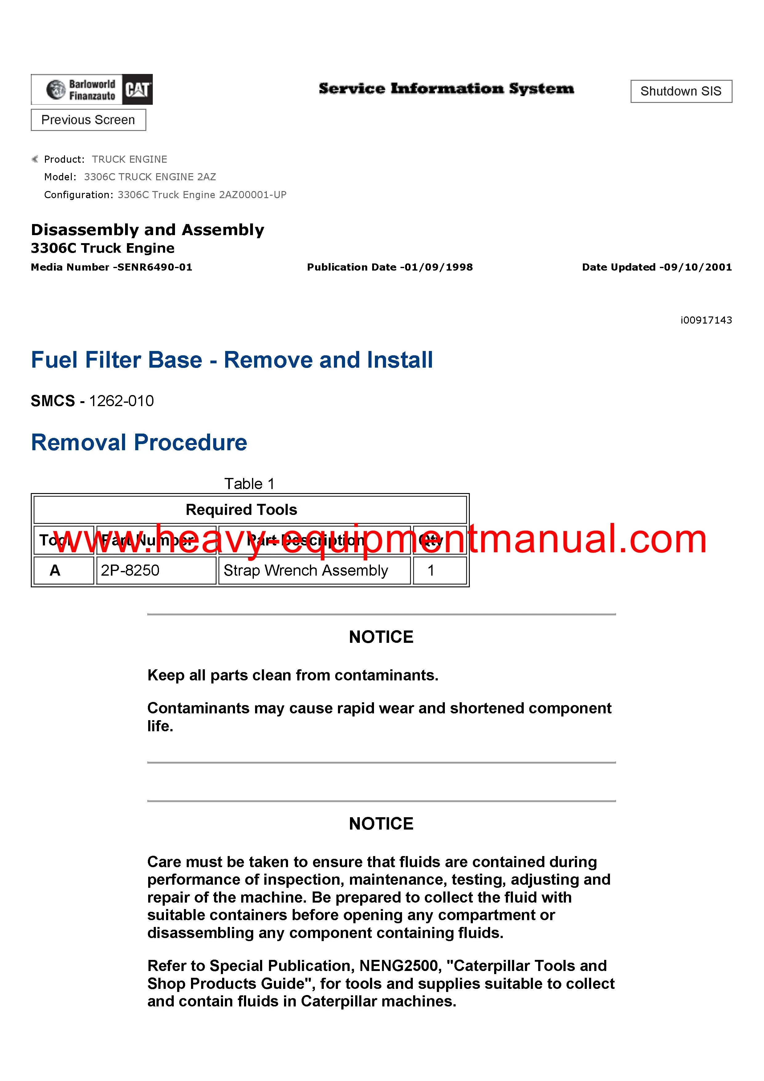 It is Complete Original Factory for Caterpillar 3306C TRUCK ENGINE. Covers all the service and repair information about Caterpillar 3306C TRUCK ENGINE. The information in this manual covers everything you need to know when you want to service and repair Caterpillar 3306C TRUCK ENGINE.