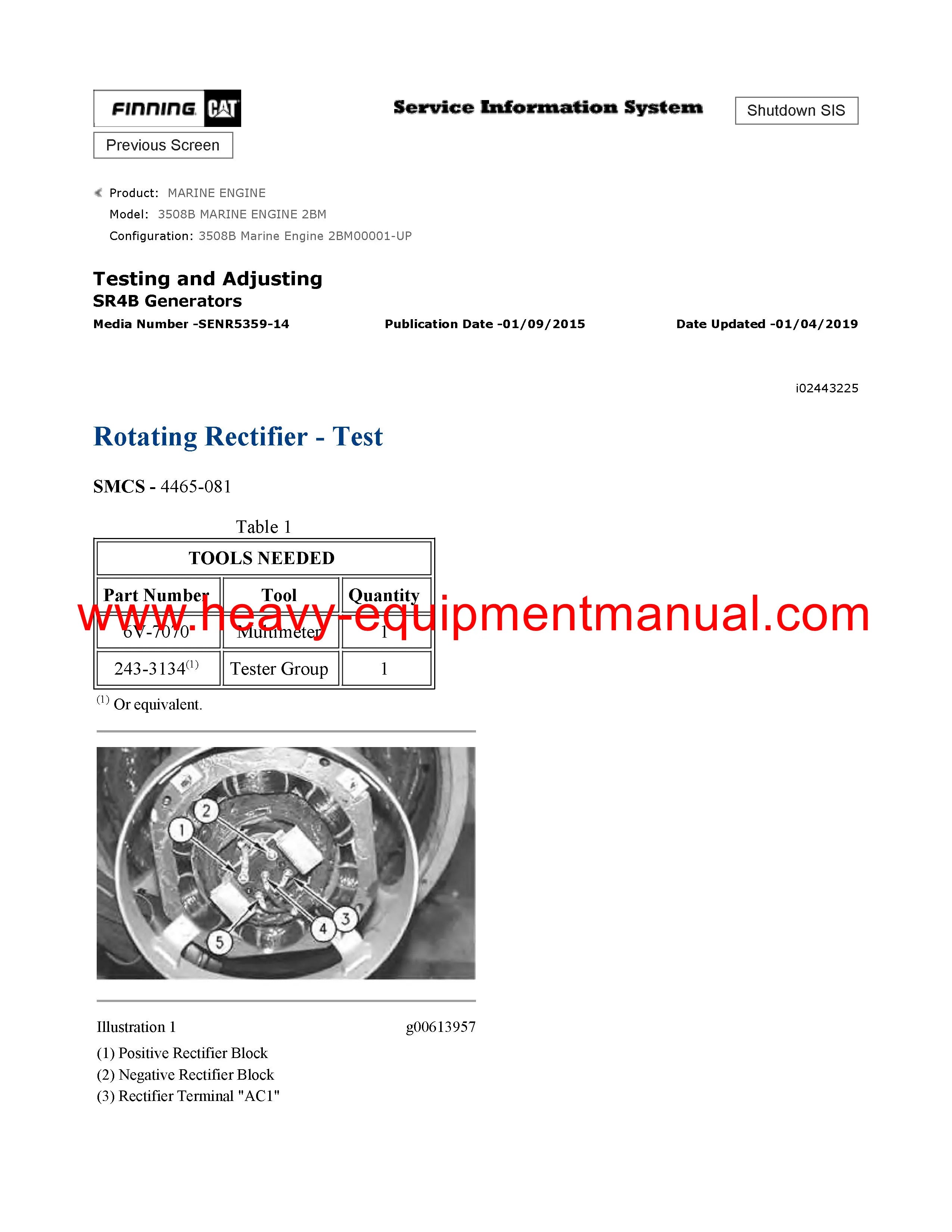 It is Complete Original Factory for Caterpillar 3508B MARINE ENGINE. Covers all the service and repair information about Caterpillar 3508B MARINE ENGINE. The information in this manual covers everything you need to know when you want to service and repair Caterpillar 3508B MARINE ENGINE.