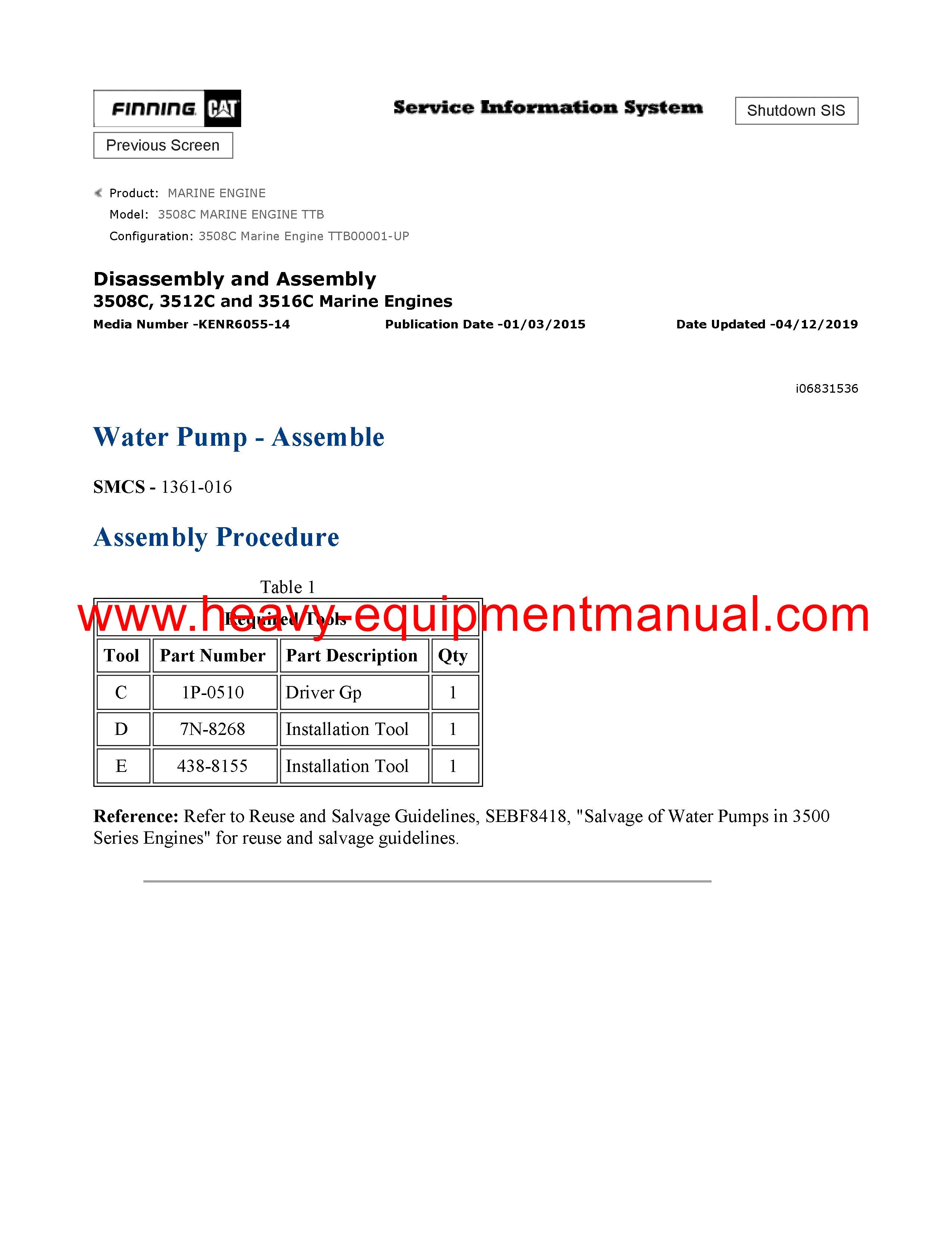 It is Complete Original Factory for Caterpillar 3508C MARINE ENGINE. Covers all the service and repair information about Caterpillar 3508C MARINE ENGINE. The information in this manual covers everything you need to know when you want to service and repair Caterpillar 3508C MARINE ENGINE.