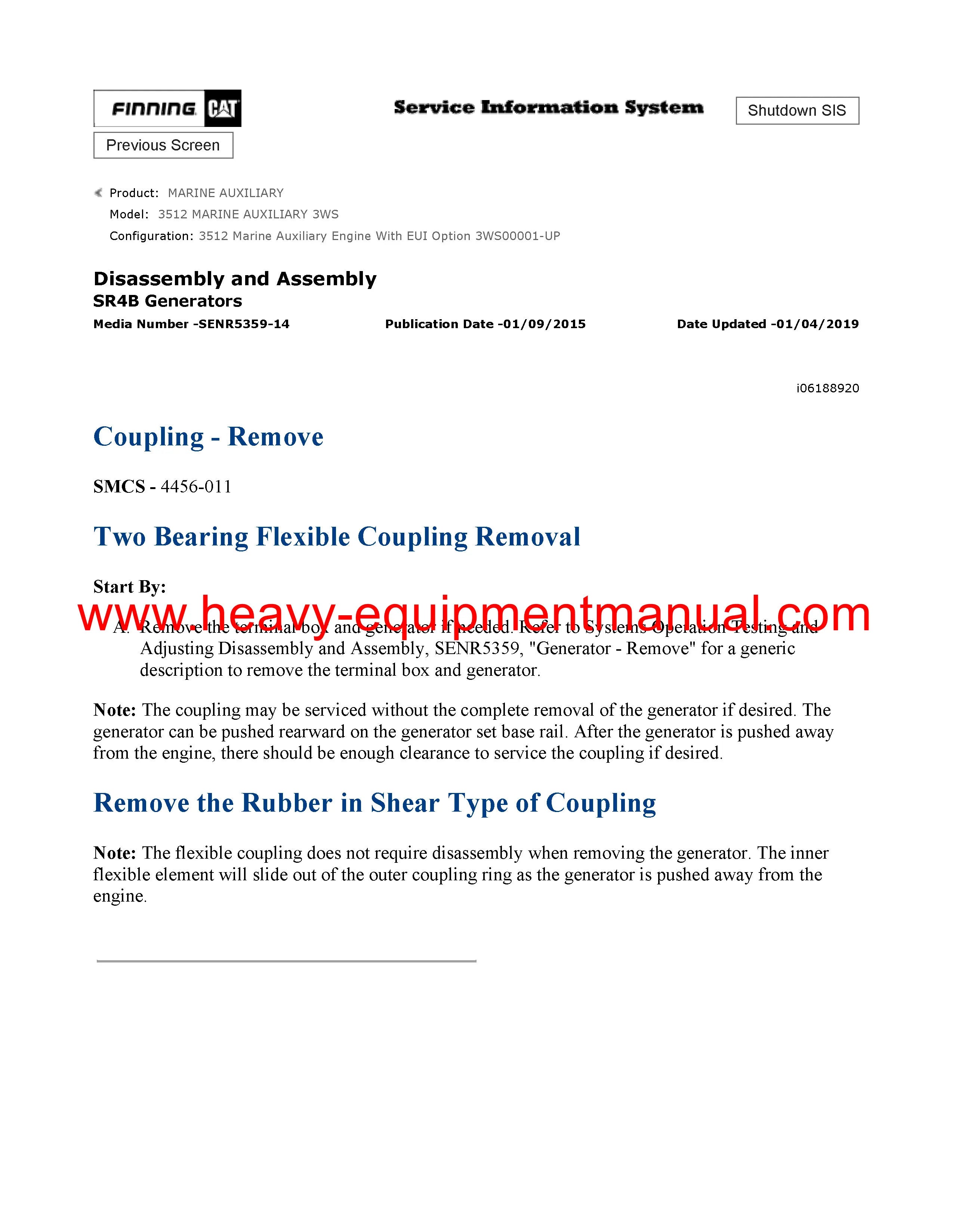 It is Complete Original Factory for Caterpillar 3512 MARINE AUXILIARY. Covers all the service and repair information about Caterpillar 3512 MARINE AUXILIARY. The information in this manual covers everything you need to know when you want to service and repair Caterpillar 3512 MARINE AUXILIARY.