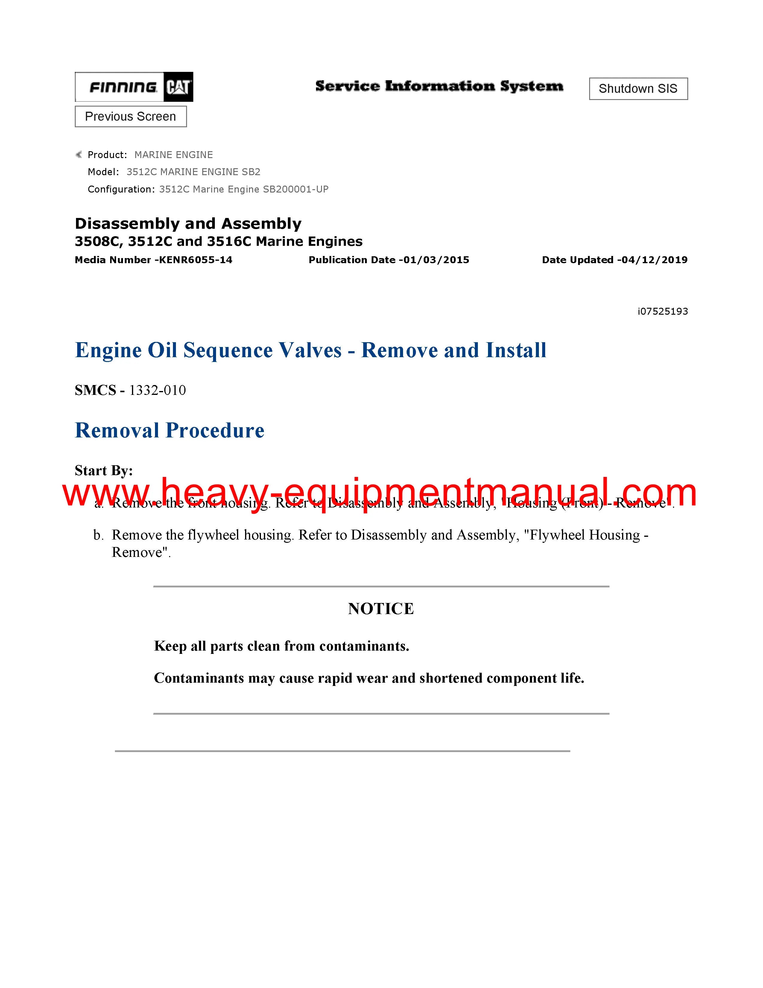 It is Complete Original Factory for Caterpillar 3512C MARINE ENGINE. Covers all the service and repair information about Caterpillar 3512C MARINE ENGINE. The information in this manual covers everything you need to know when you want to service and repair Caterpillar 3512C MARINE ENGINE.