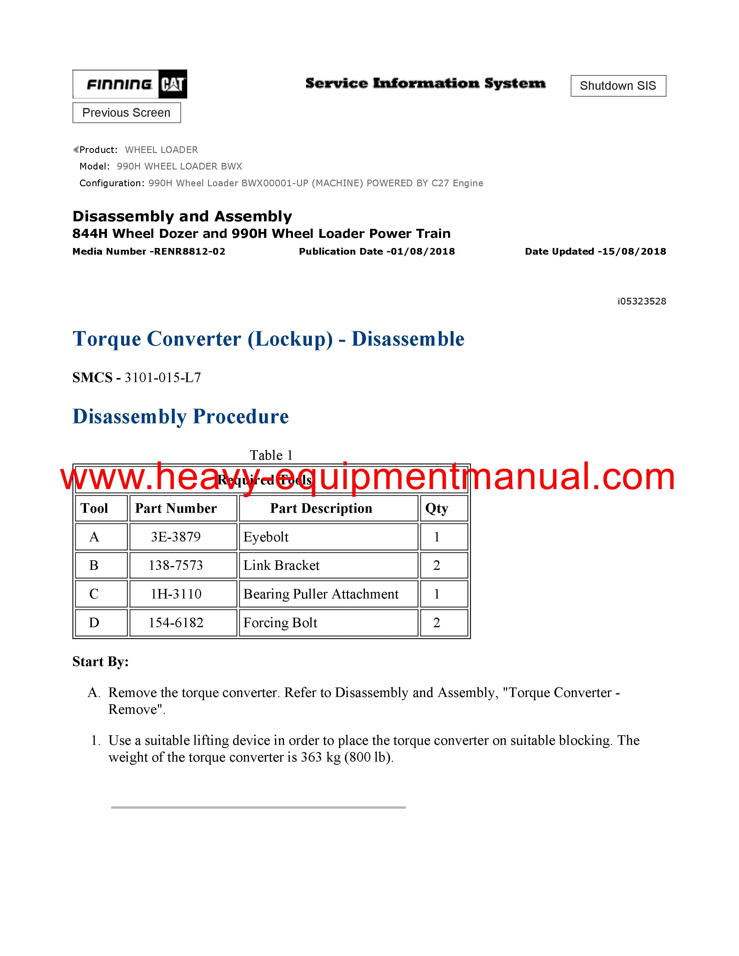 It is Complete Original Factory for Caterpillar 990H WHEEL LOADER. Covers all the service and repair information about Caterpillar 990H WHEEL LOADER. The information in this manual covers everything you need to know when you want to service and repair Caterpillar 990H WHEEL LOADER.