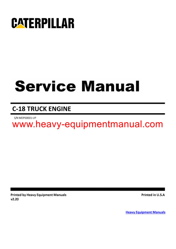 It is Complete Original Factory for Caterpillar C-18 TRUCK ENGINE. Covers all the service and repair information about Caterpillar C-18 TRUCK ENGINE. The information in this manual covers everything you need to know when you want to service and repair Caterpillar C-18 TRUCK ENGINE.