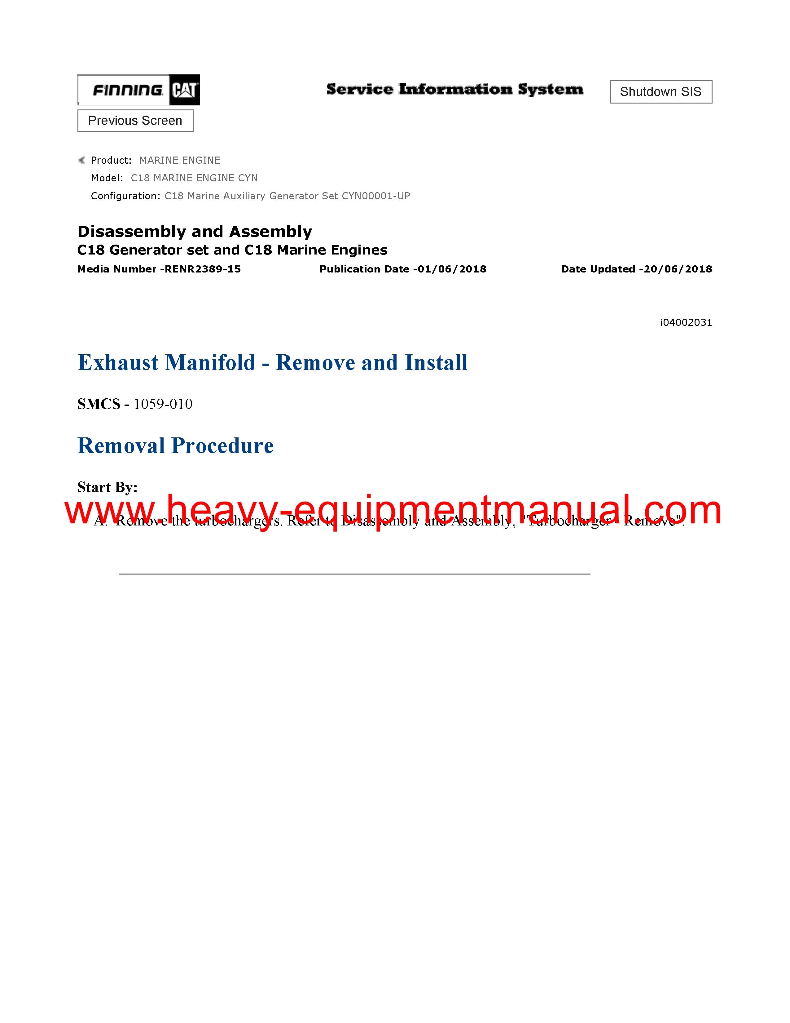 It is Complete Original Factory for Caterpillar C18 MARINE ENGINE. Covers all the service and repair information about Caterpillar C18 MARINE ENGINE. The information in this manual covers everything you need to know when you want to service and repair Caterpillar C18 MARINE ENGINE.