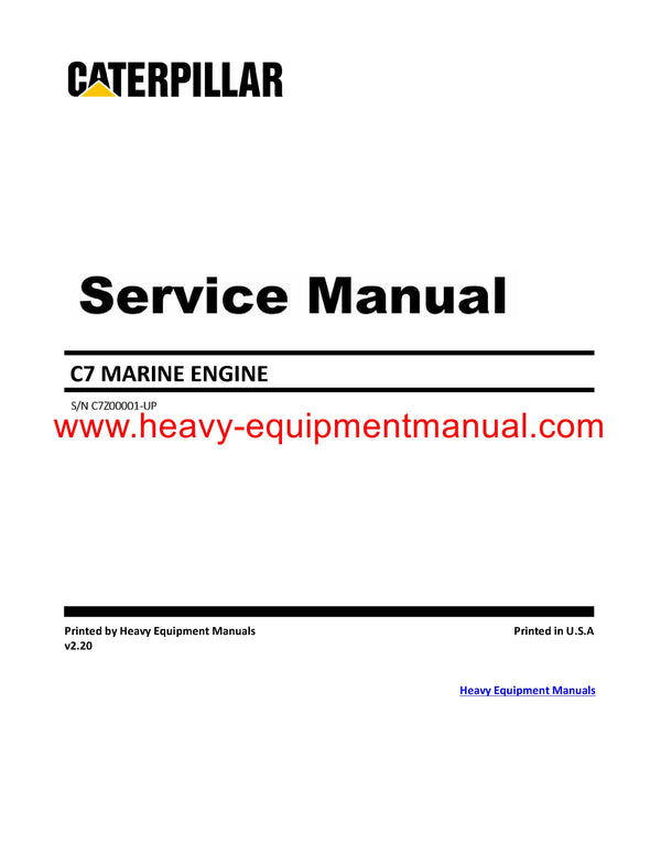 It is Complete Original Factory for Caterpillar C7 MARINE ENGINE. Covers all the service and repair information about Caterpillar C7 MARINE ENGINE. The information in this manual covers everything you need to know when you want to service and repair Caterpillar C7 MARINE ENGINE.