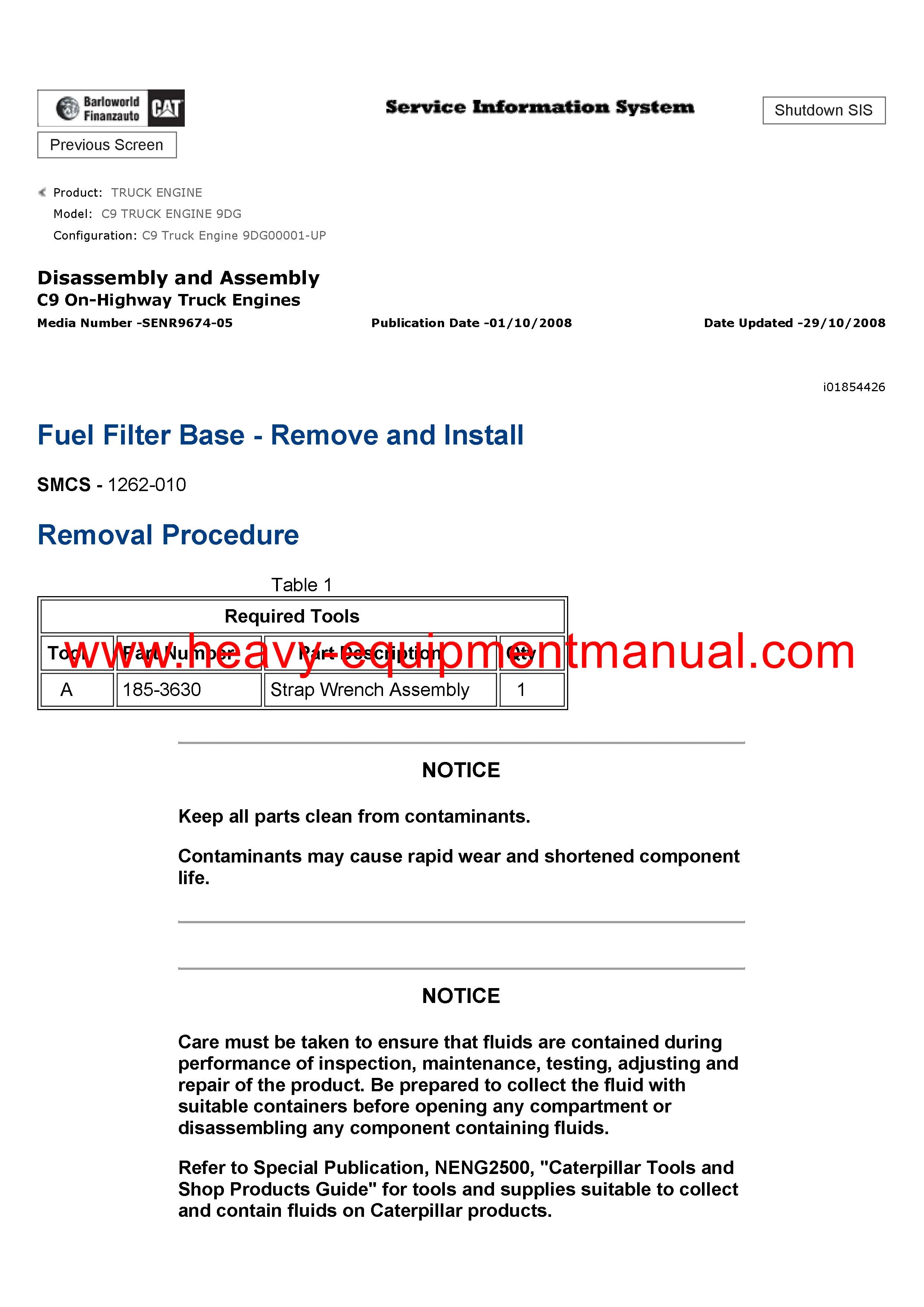 It is Complete Original Factory for Caterpillar C9 TRUCK ENGINE covers all the service and repair information about Caterpillar C9 TRUCK ENGINE. The information in this manual covers everything you need to know when you want to repair Caterpillar C9 TRUCK ENGINE.