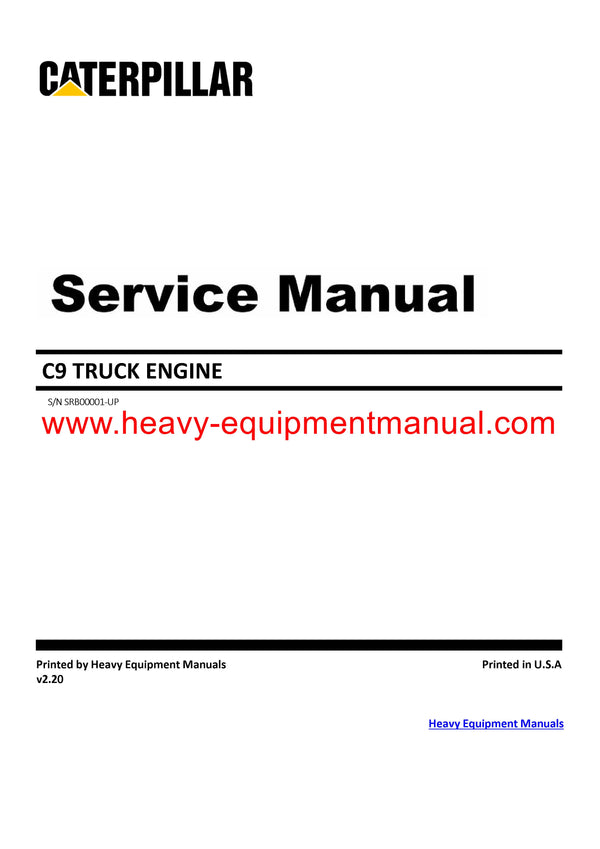It is Complete Original Factory for Caterpillar C9 TRUCK ENGINE. Covers all the service and repair information about Caterpillar C9 TRUCK ENGINE. The information in this manual covers everything you need to know when you want to service and repair Caterpillar C9 TRUCK ENGINE.