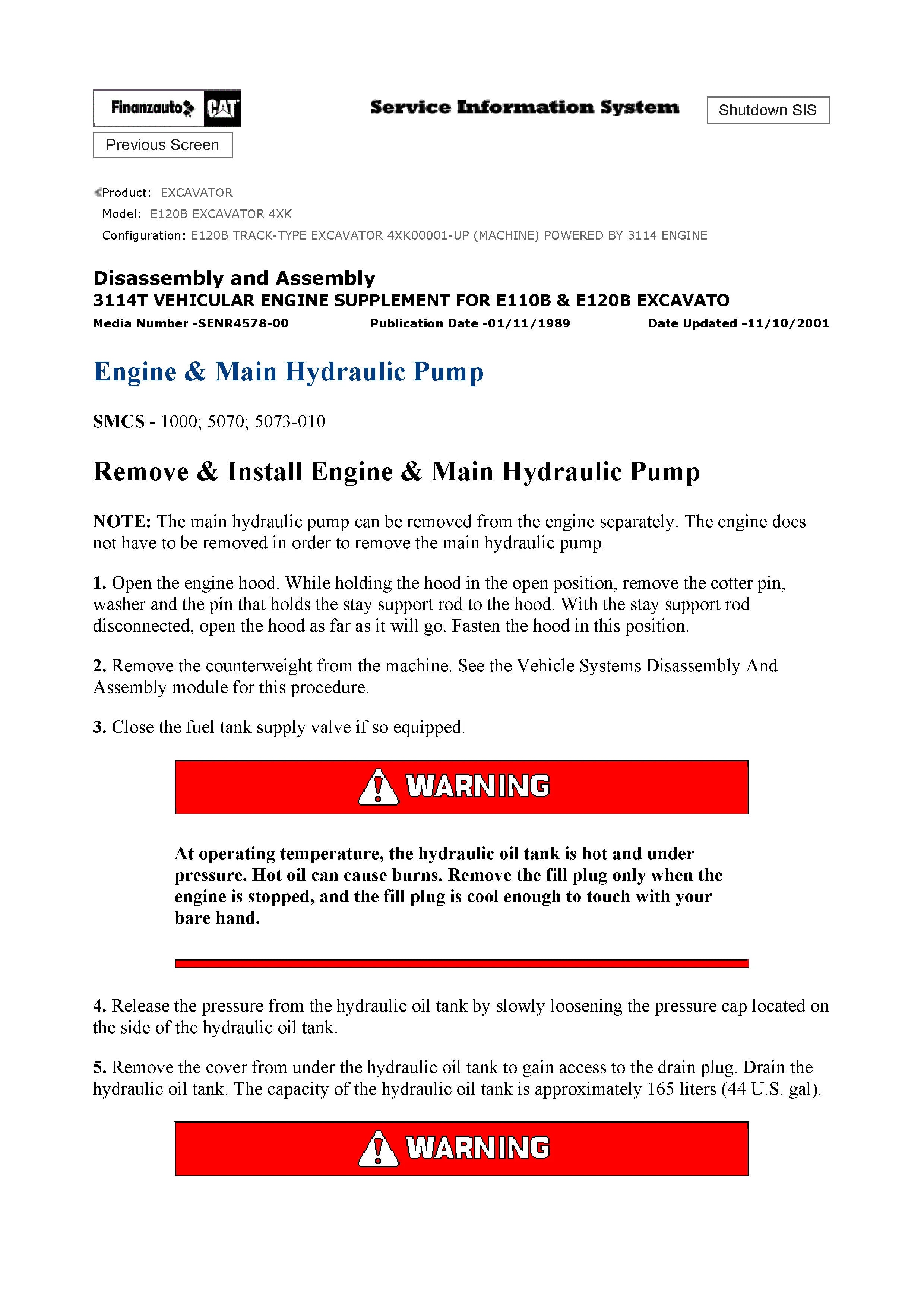 Caterpillar E120B EXCAVATOR General Service Information