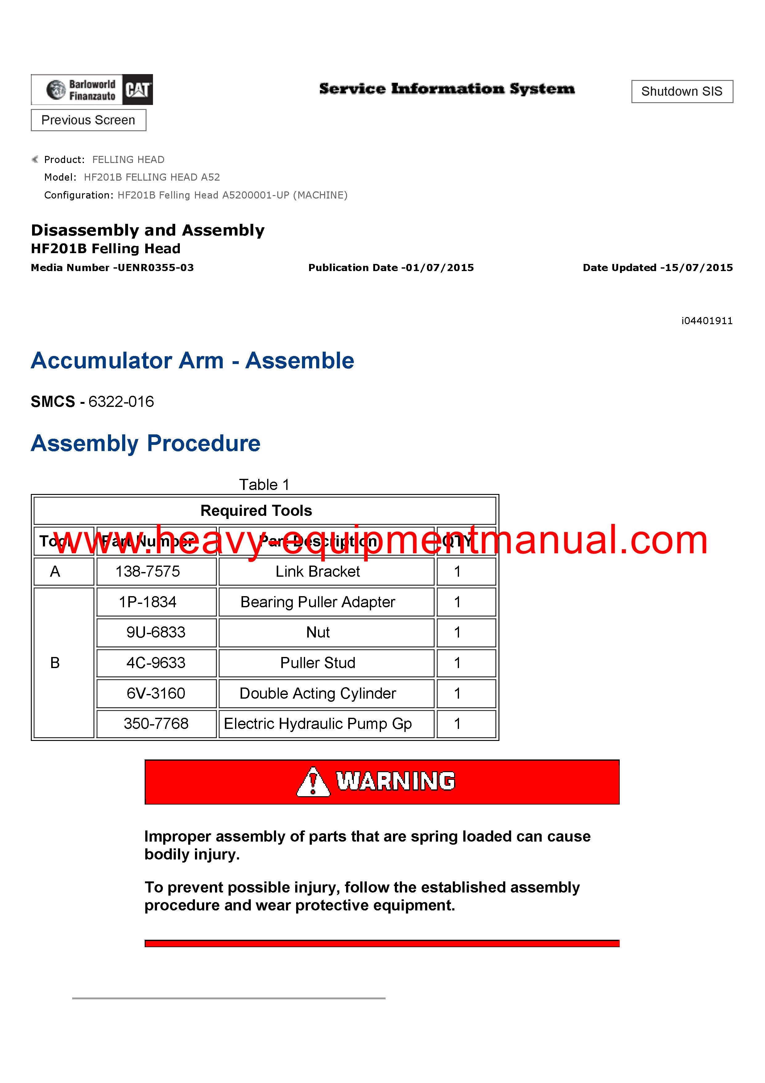 It is Complete Original Factory for Caterpillar HF201B FELLING HEAD. Covers all the service and repair information about Caterpillar HF201B FELLING HEAD. The information in this manual covers everything you need to know when you want to service and repair Caterpillar HF201B FELLING HEAD.