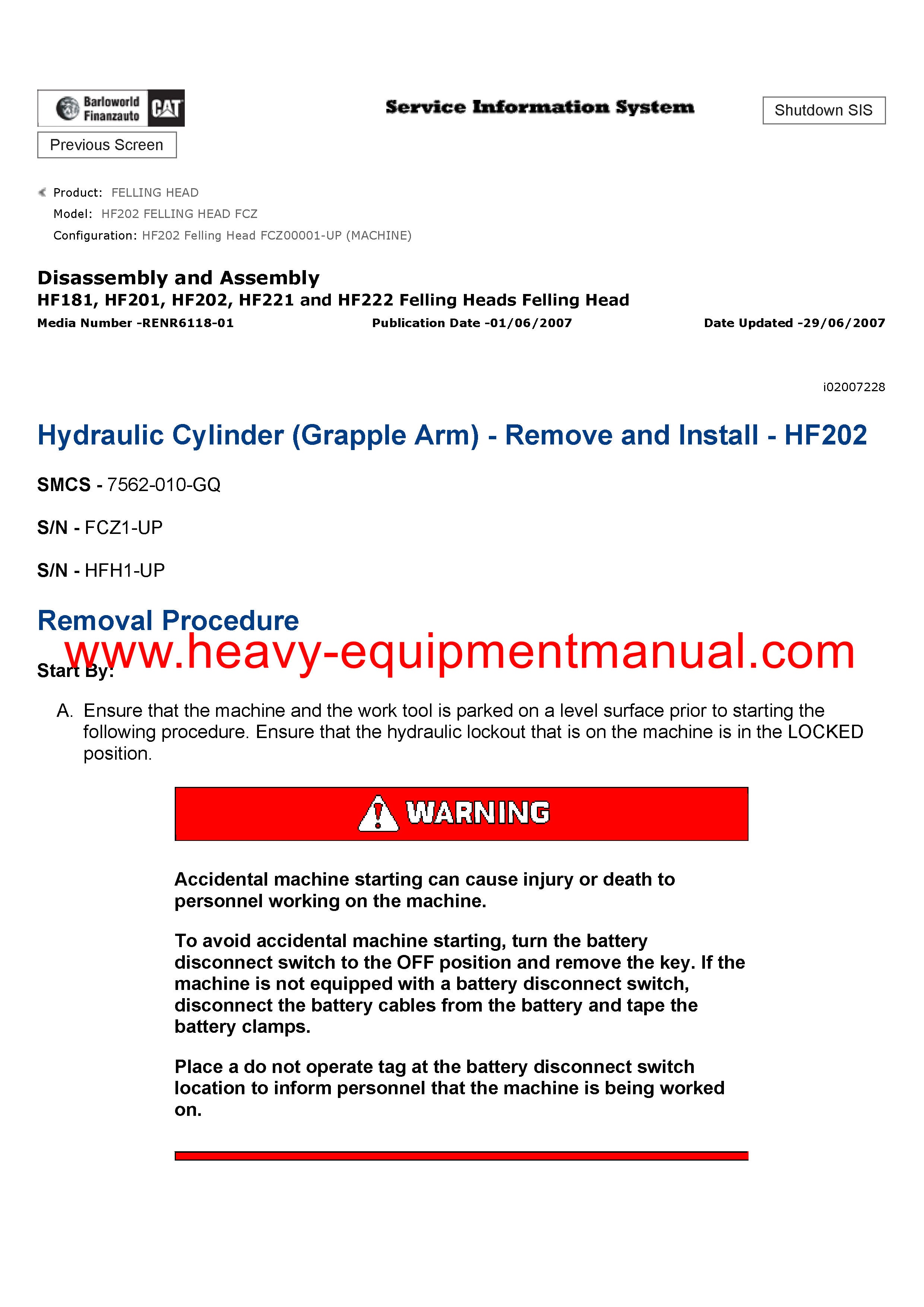 It is Complete Original Factory for Caterpillar HF202 FELLING HEAD. Covers all the service and repair information about Caterpillar HF202 FELLING HEAD. The information in this manual covers everything you need to know when you want to service and repair Caterpillar HF202 FELLING HEAD.