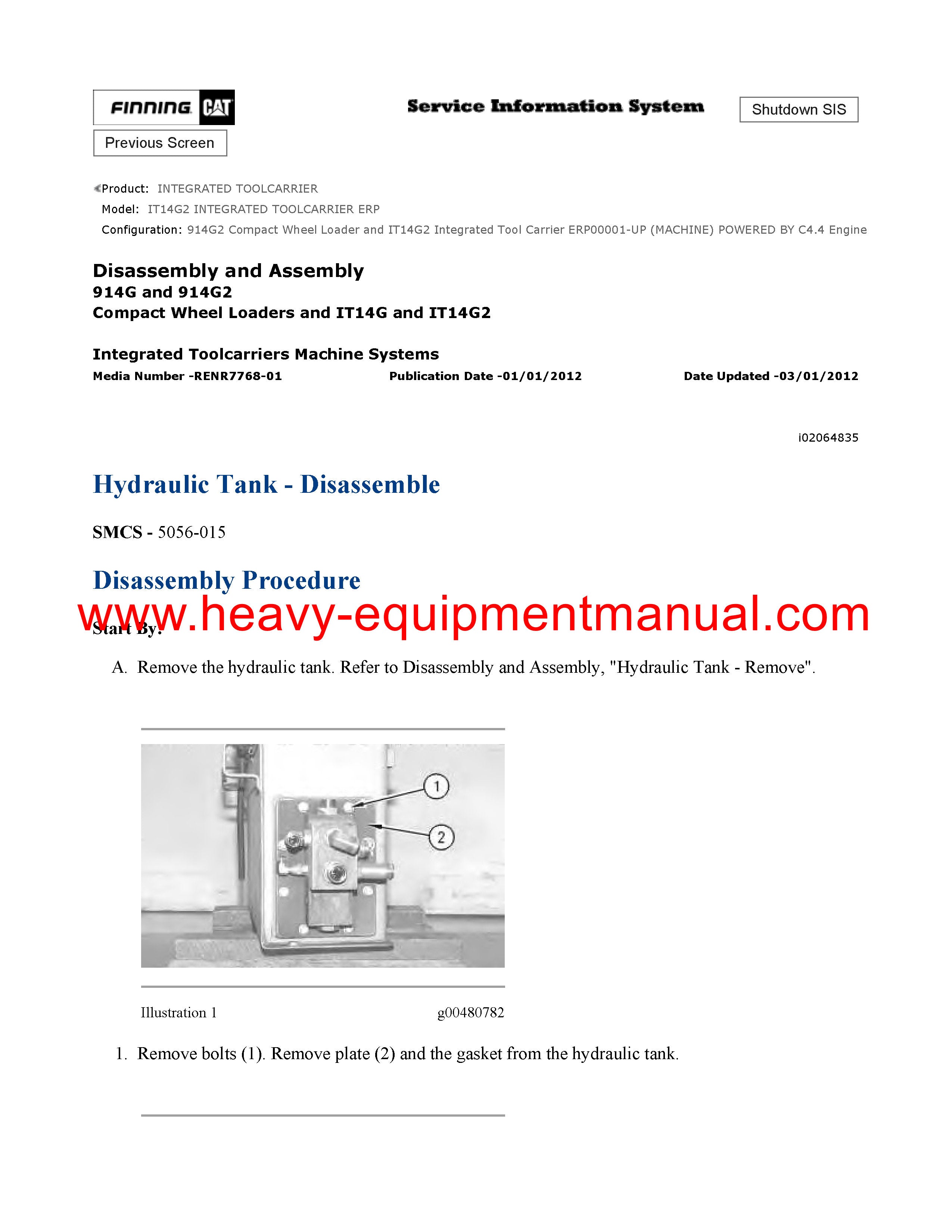 It is Complete Original Factory for Caterpillar IT14G2 INTEGRATED TOOLCARRIER. Covers all the service and repair information about Caterpillar IT14G2 INTEGRATED TOOLCARRIER. The information in this manual covers everything you need to know when you want to service and repair Caterpillar IT14G2 INTEGRATED TOOLCARRIER.