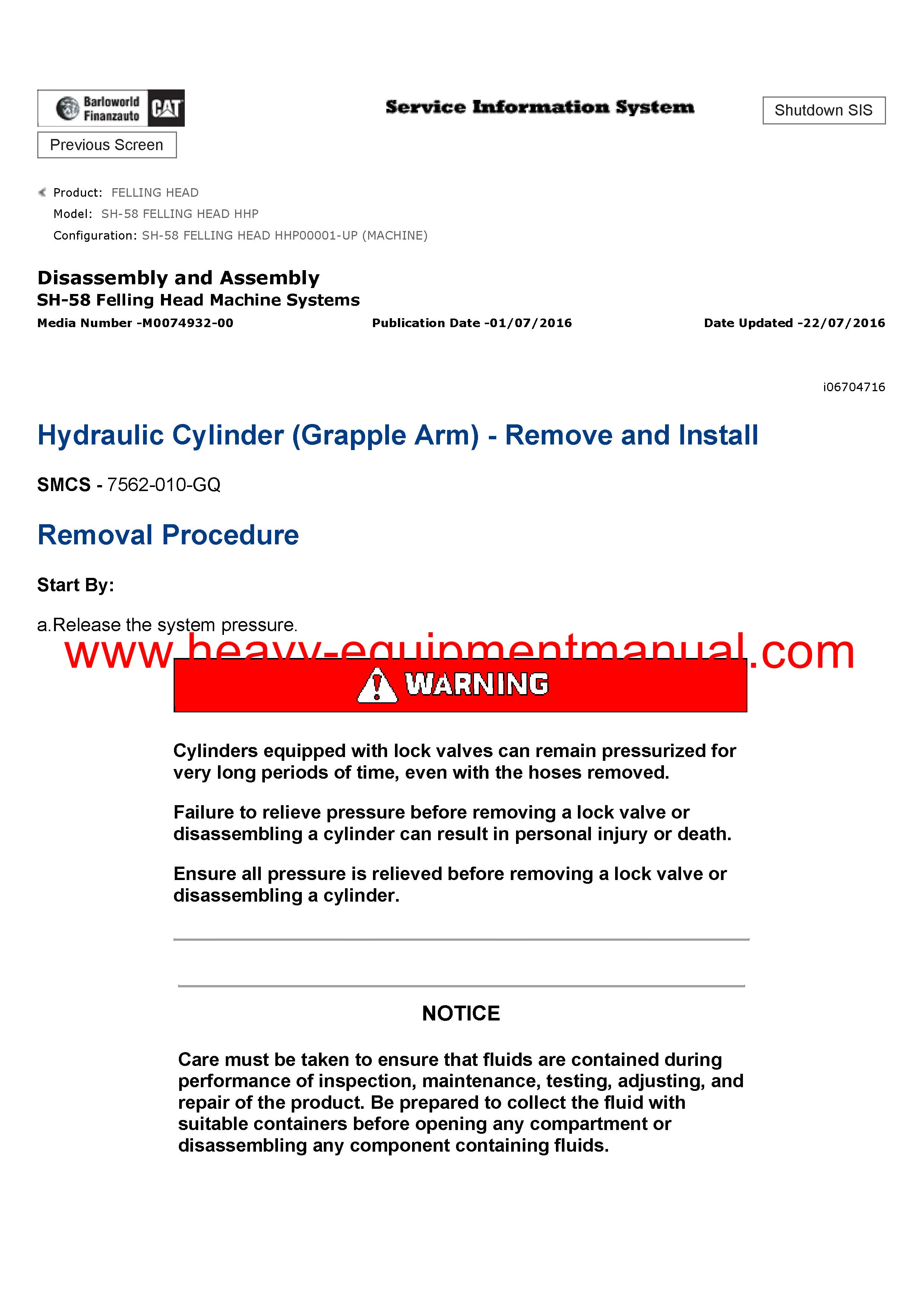 It is Complete Original Factory for Caterpillar SH-58 FELLING HEAD. Covers all the service and repair information about Caterpillar SH-58 FELLING HEAD. The information in this manual covers everything you need to know when you want to service and repair Caterpillar SH-58 FELLING HEAD.