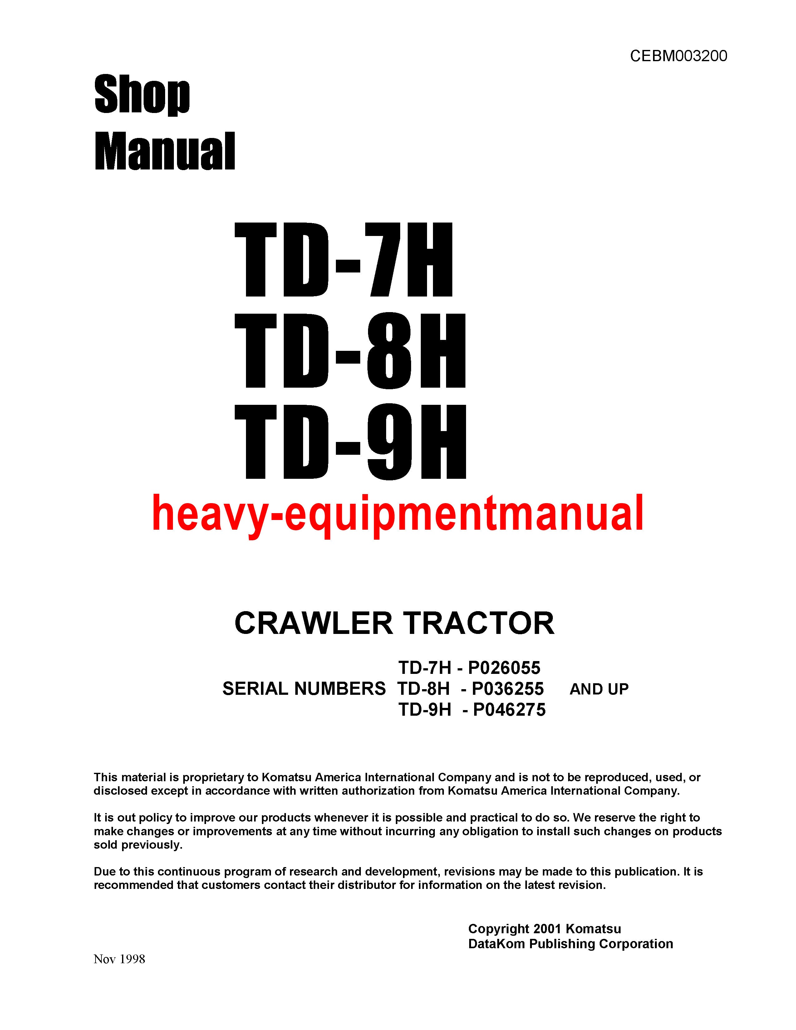Download Komatsu Td-9h Bulldozer Service Manual SN P045501-P046274