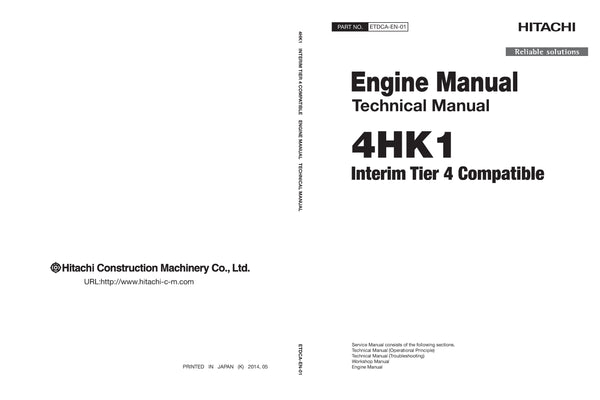It is Complete Original Factory covers all the service and repair information for Hitachi 4HK1 Interim Tier 4 Compatible Engine.