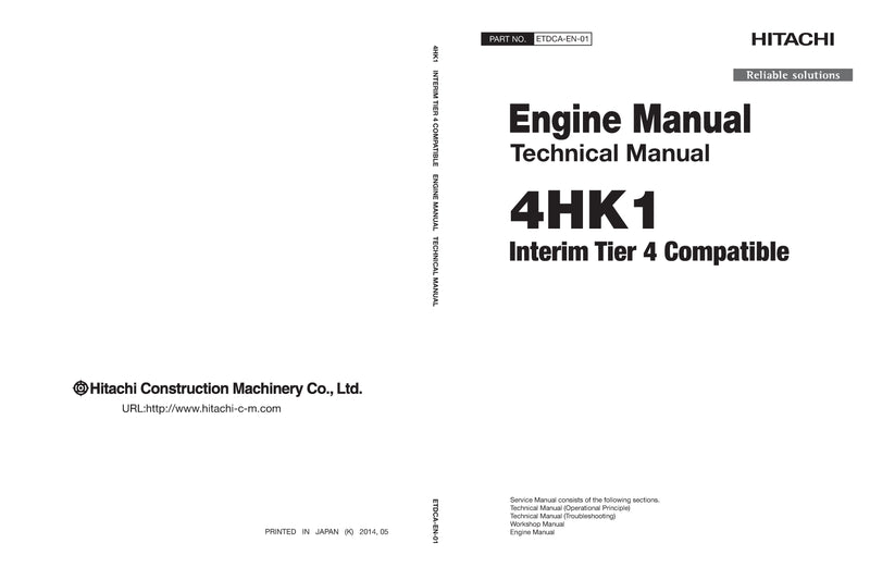 Hitachi 4HK1 Interim Tier 4 Compatible Engine Technical Manual Download