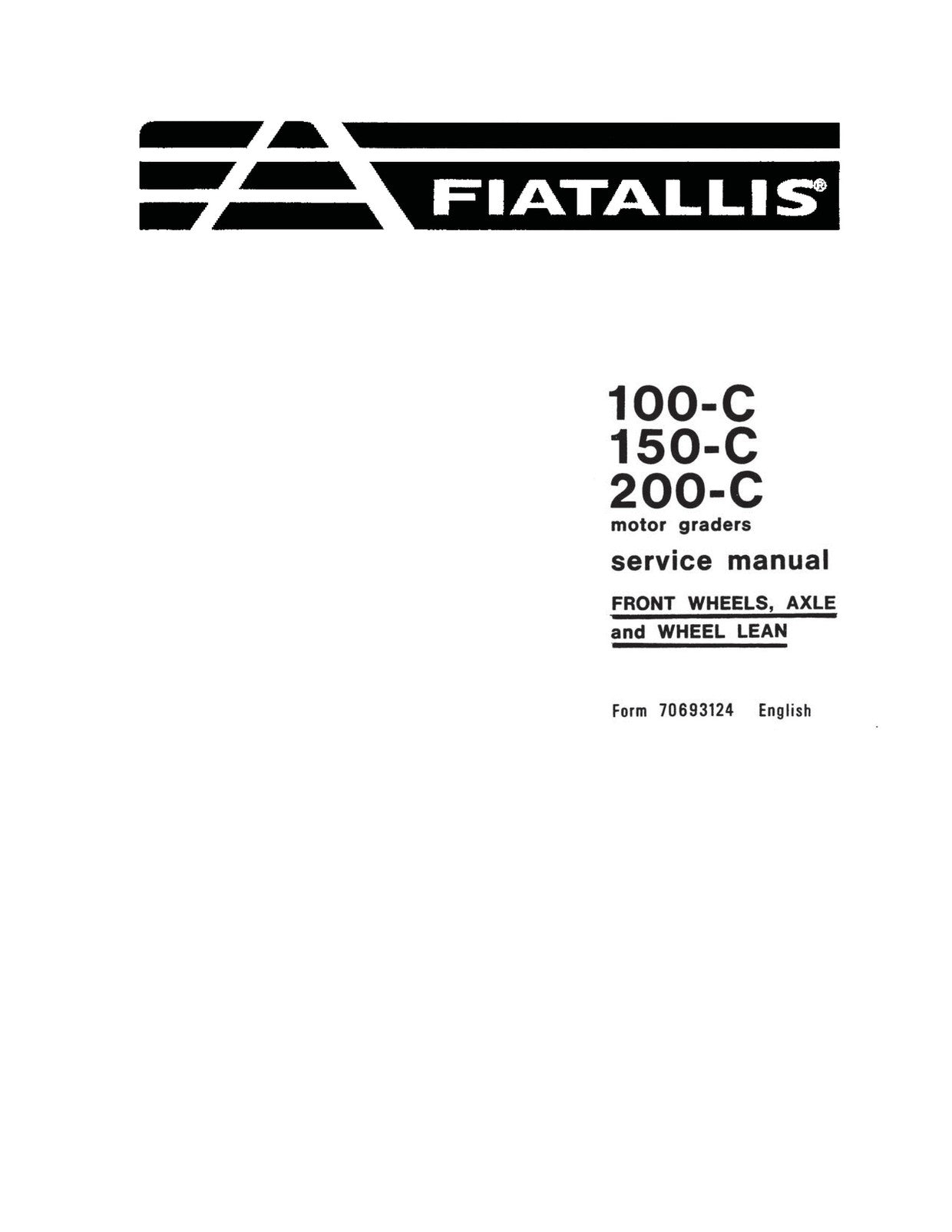 New Holland 100-C 150-C 200-C Motor grader Front Wheels Axle and Wheel Lean Service Repair Manual 70693124