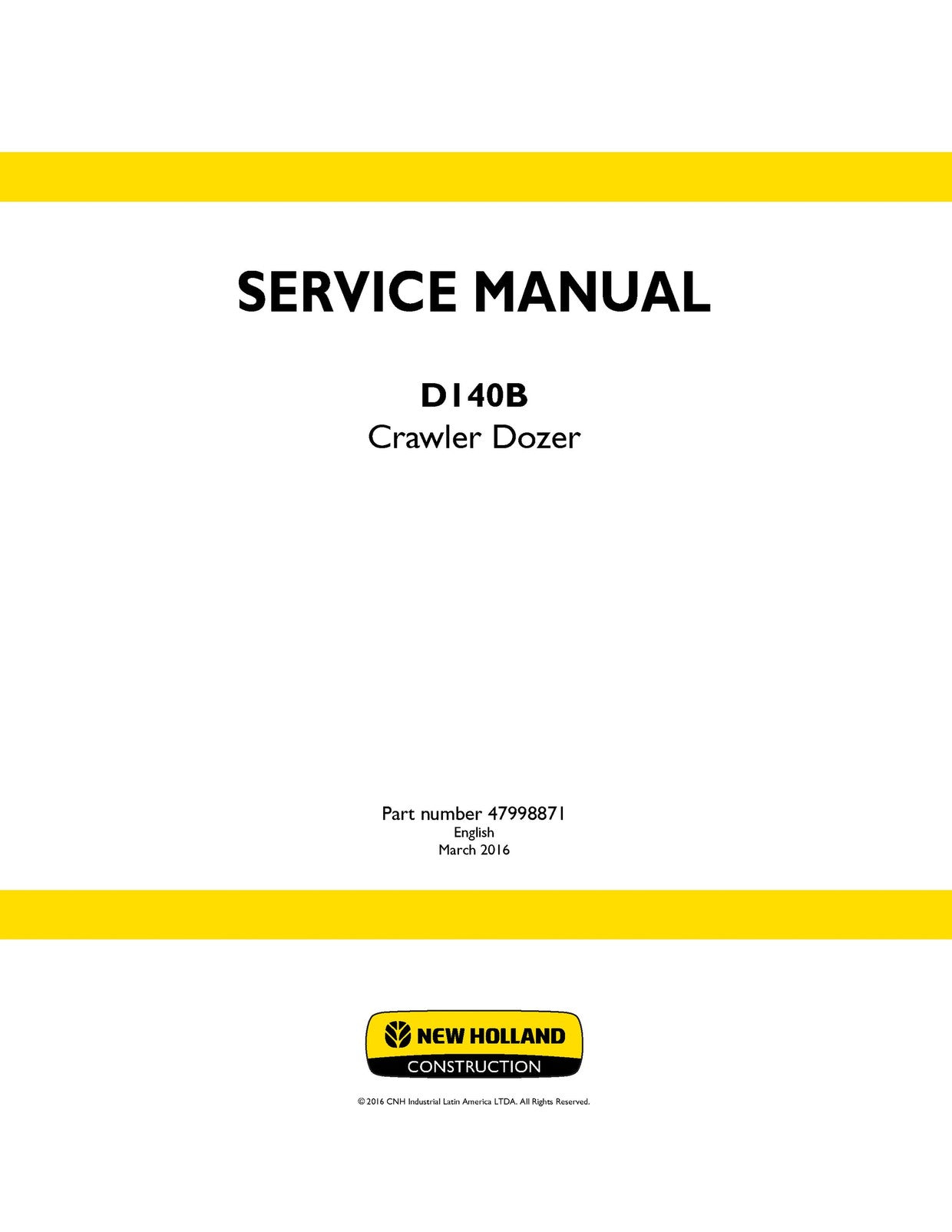 It is Complete Original Factory for New Holland D140B Crawler Dozer. Covers all the service and repair information about New Holland D140B Crawler Dozer. The information in this manual covers everything you need to know when you want to service and repair New Holland D140B Crawler Dozer.