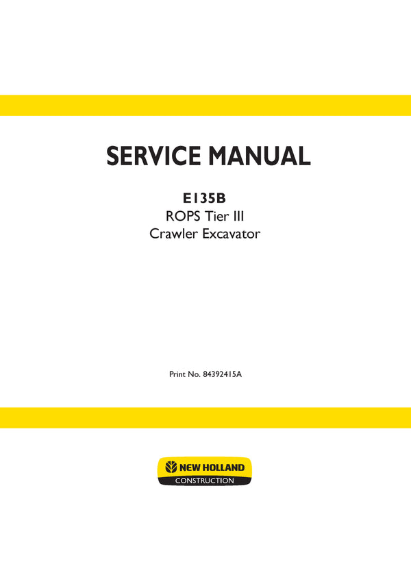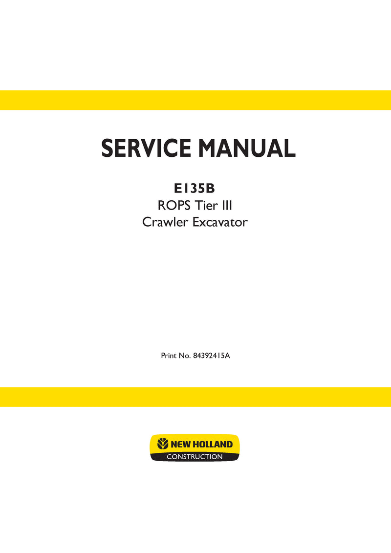 Download New Holland E135BSR ROPS Tier III Crawler Excavator Service Repair Manual 84392415A