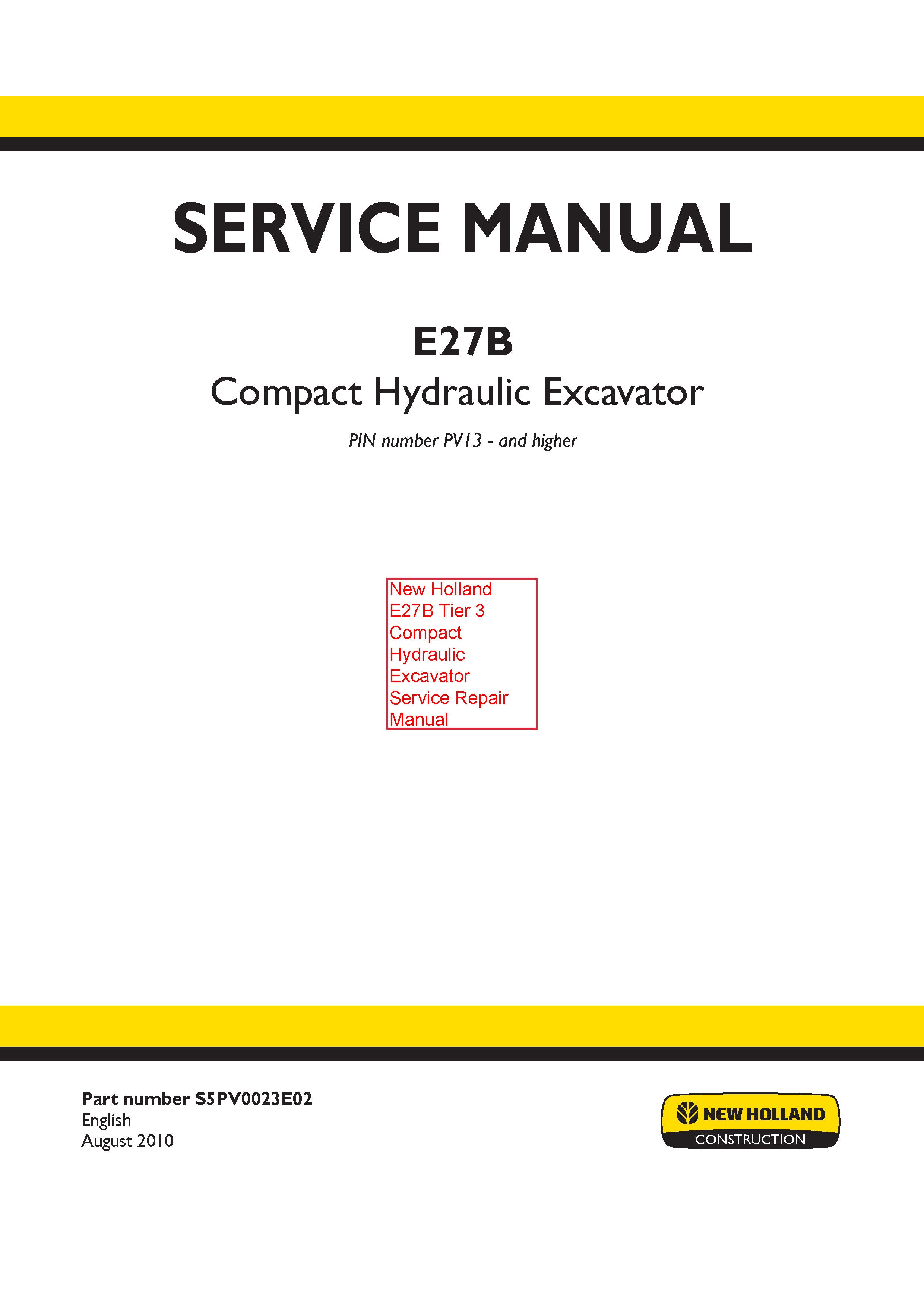 Download New Holland E27B Tier 3 Compact Hydraulic Excavator Service Repair Manual S5PV0023E02