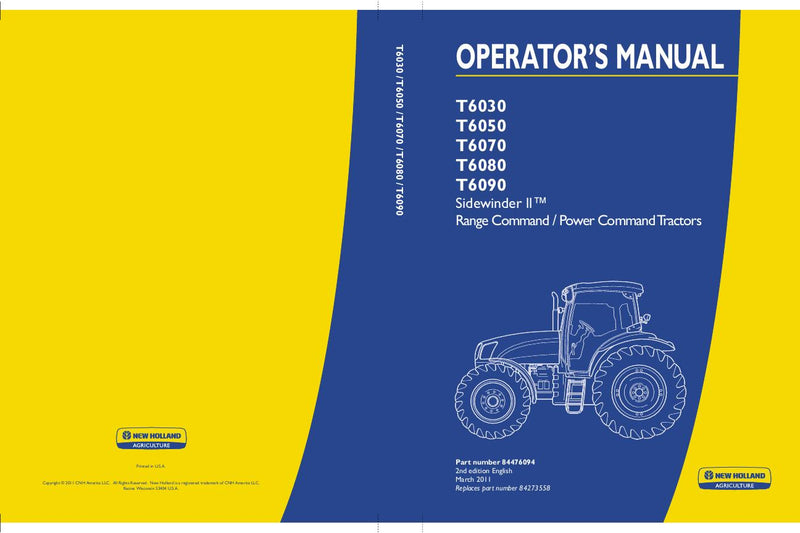 Download New Holland T6030 , T6050 , T6070 , T6080 , T6090 Sidewinder II Range Command / Power Command Tractors Operator's Manual