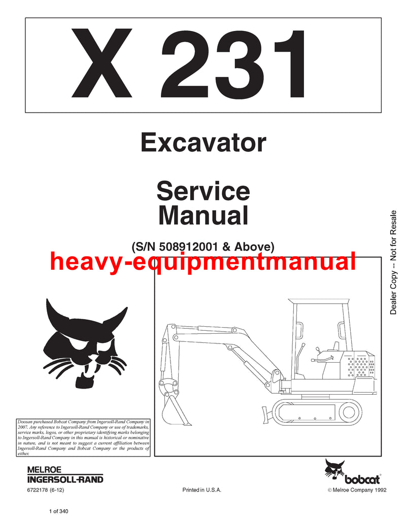Download Bobcat 231 Excavator Service Repair Manual 508912001 trust Badges