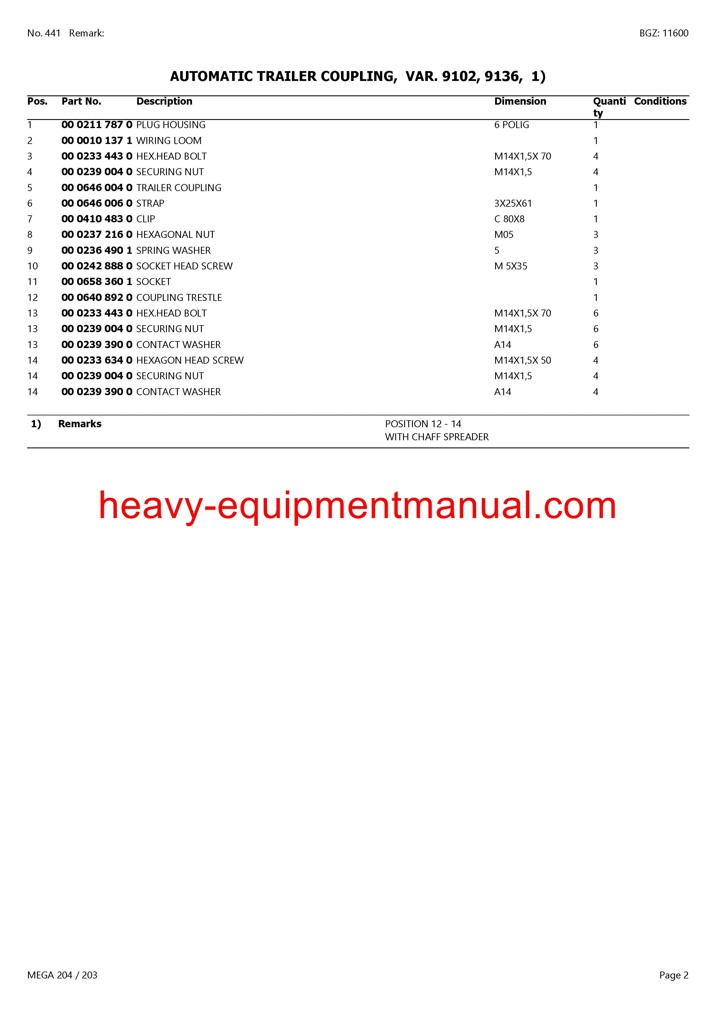 PDF Claas 204/203 Mega Combine Parts Manual trust Badges