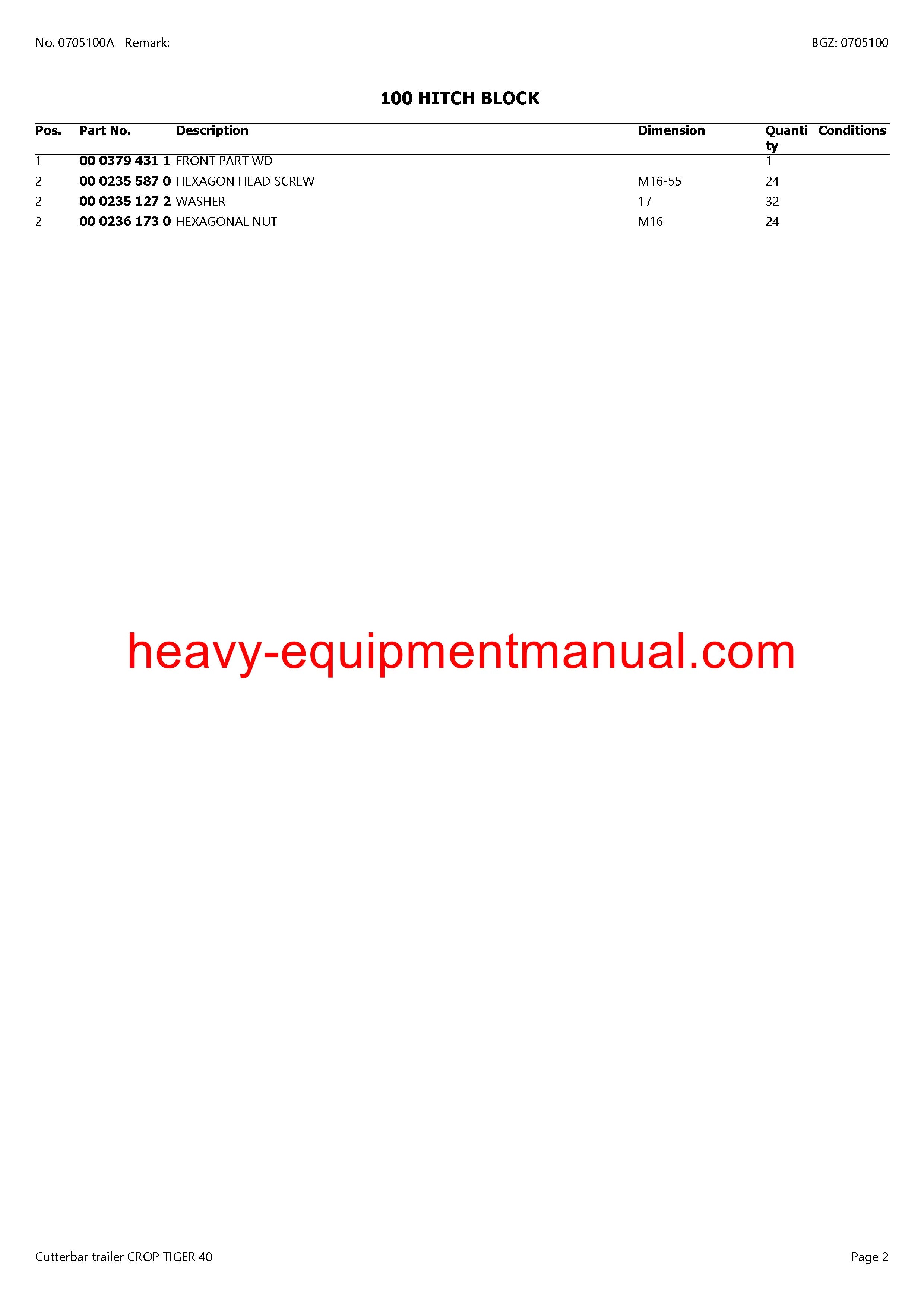PDF Claas 40 Crop Tiger Cutterbar Trailer Parts Manual