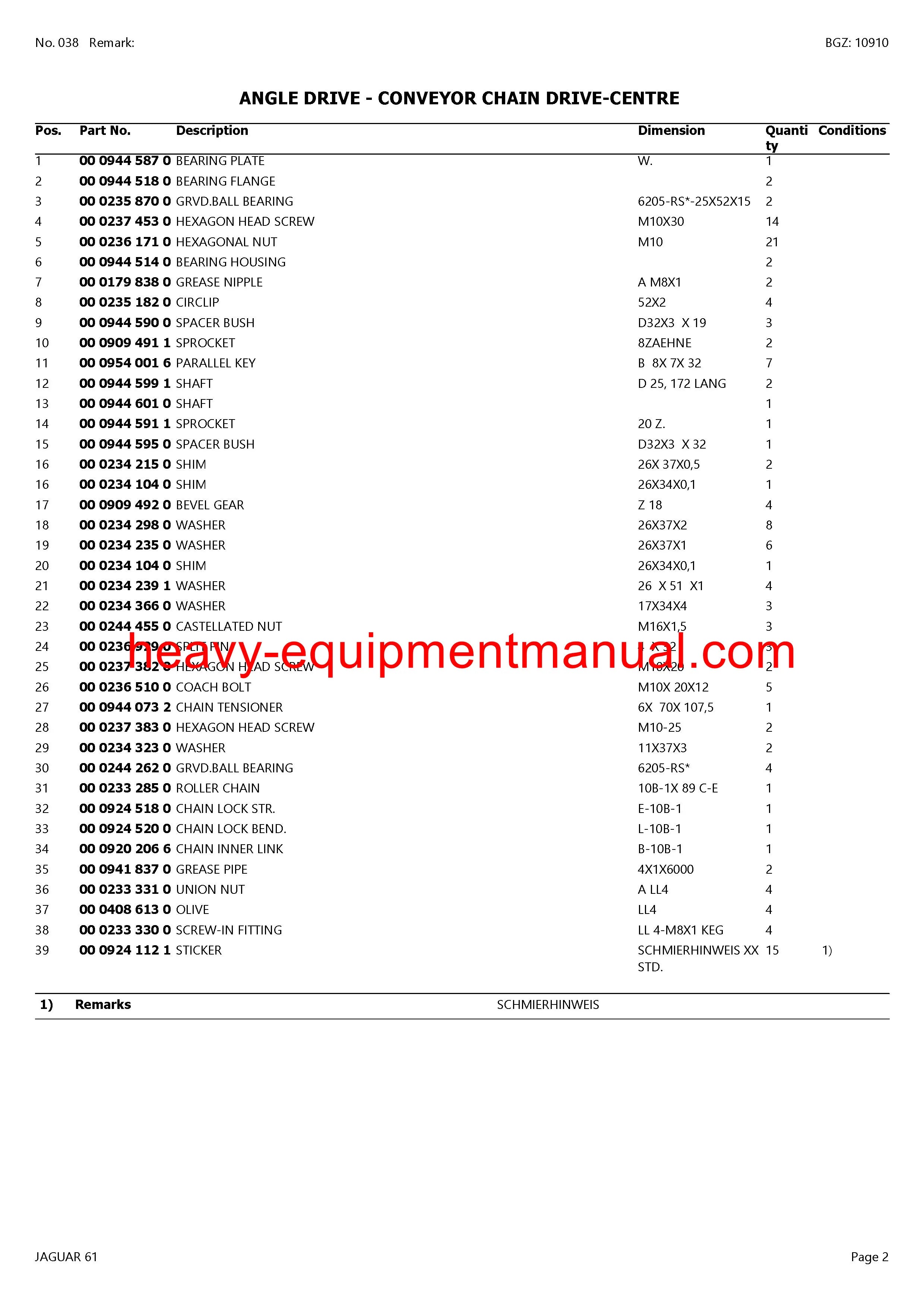 PDF Claas 61 Jaguar Forage Harvester Parts Manual