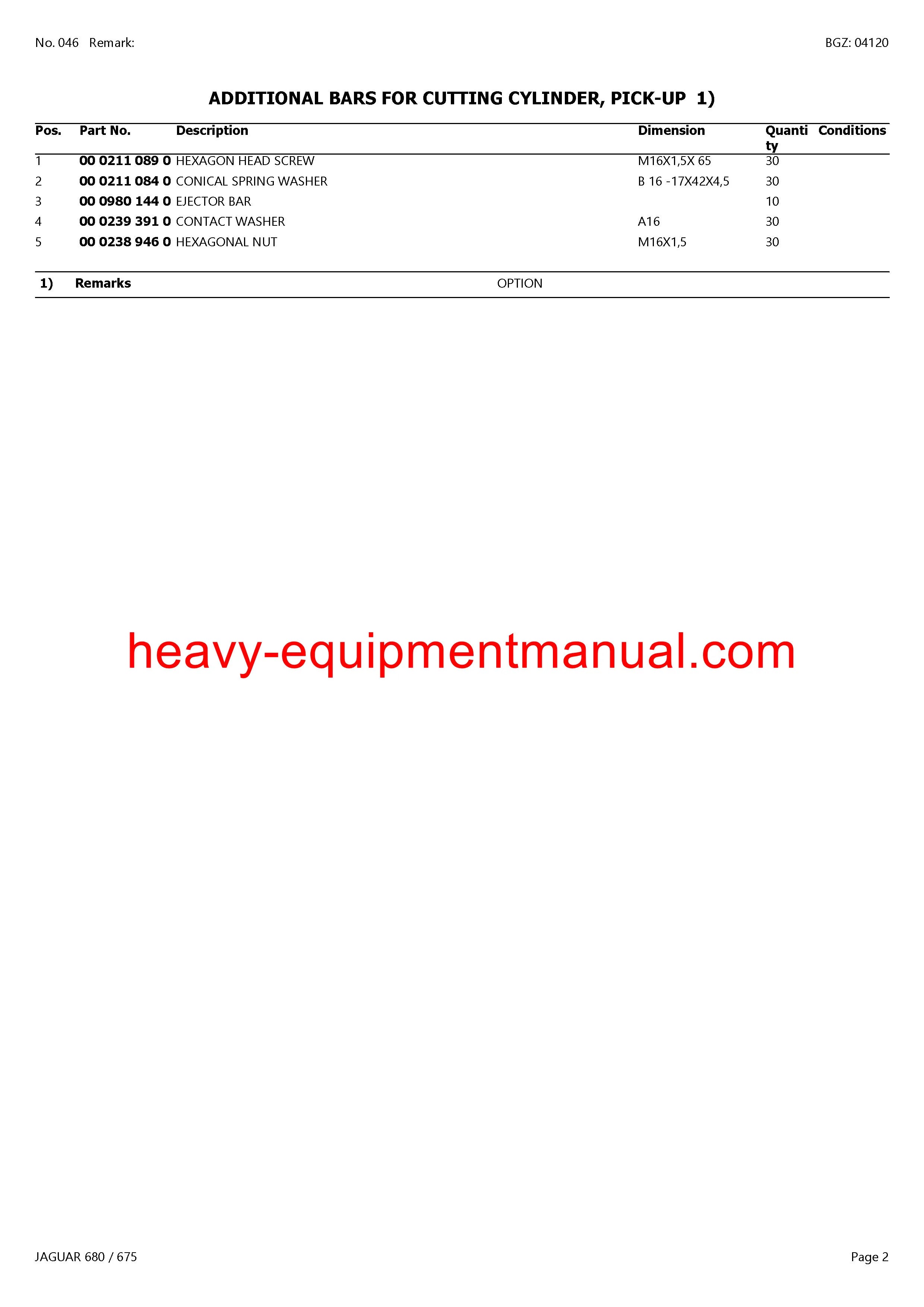 PDF Claas 680/ 675 Jaguar Forage Harvester Parts Manual trust Badges