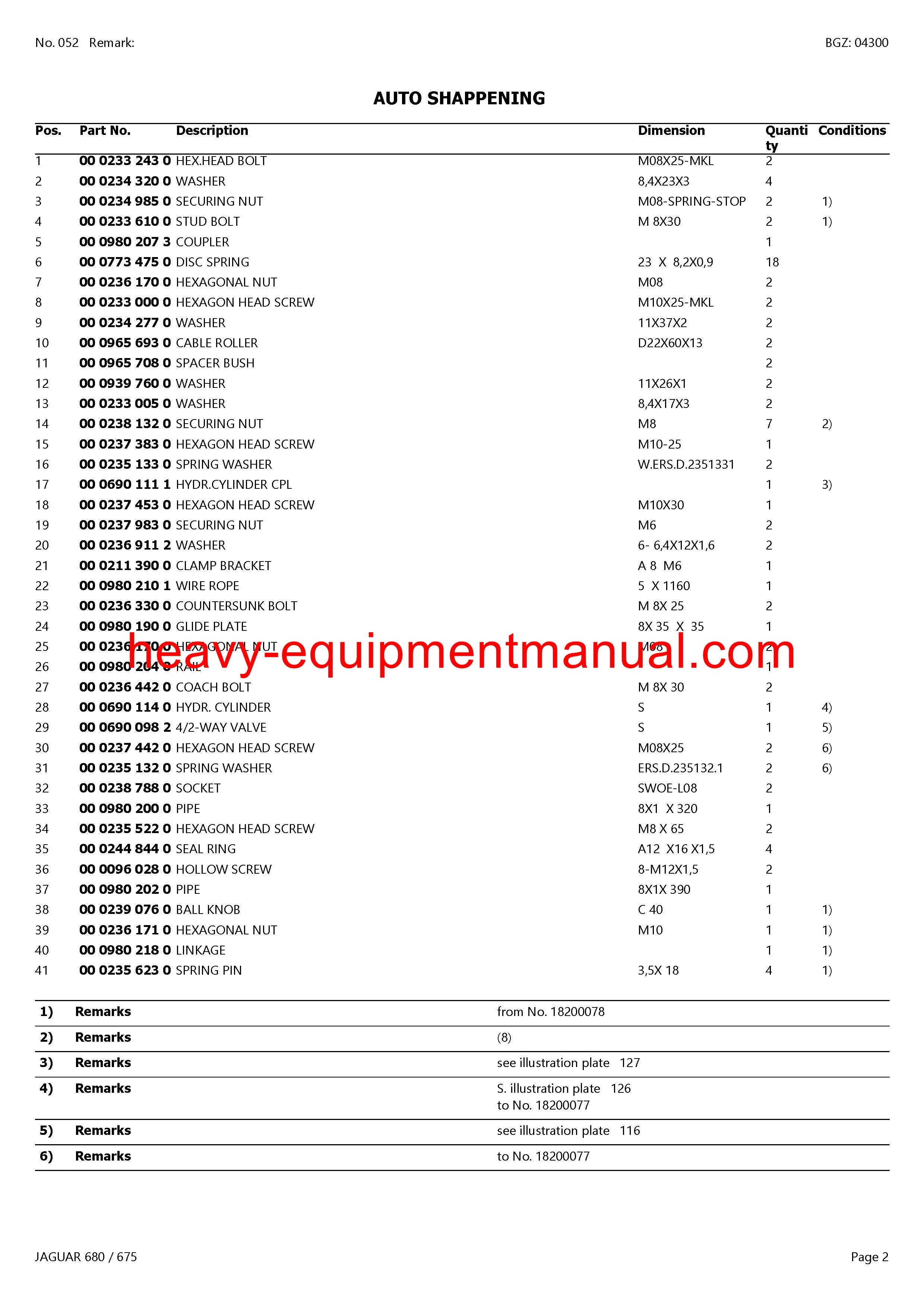 PDF Claas 680/ 675 Jaguar Forage Harvester Parts Manual